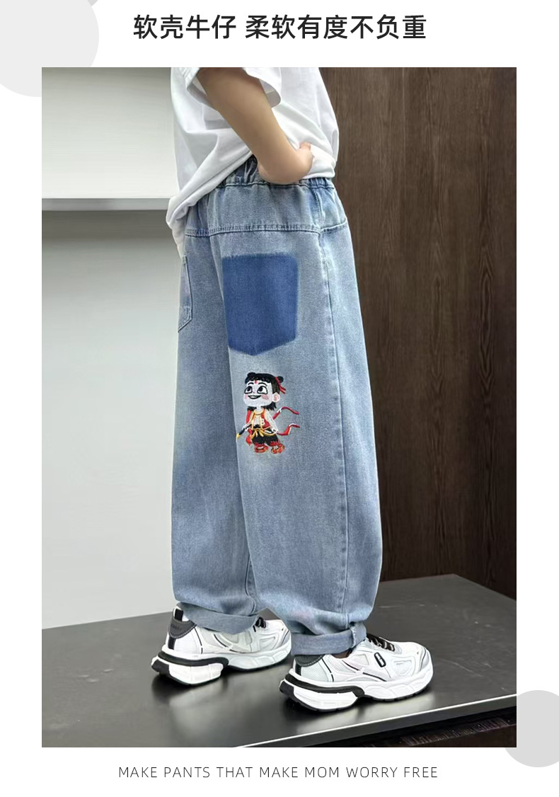 소년 청바지 봄 2025 봄 새로운 더피 잘 생긴 스타일 어린 소년 스트레이트 바지 봄과 가을 어린이 트렌디 한 바지스토어 가기