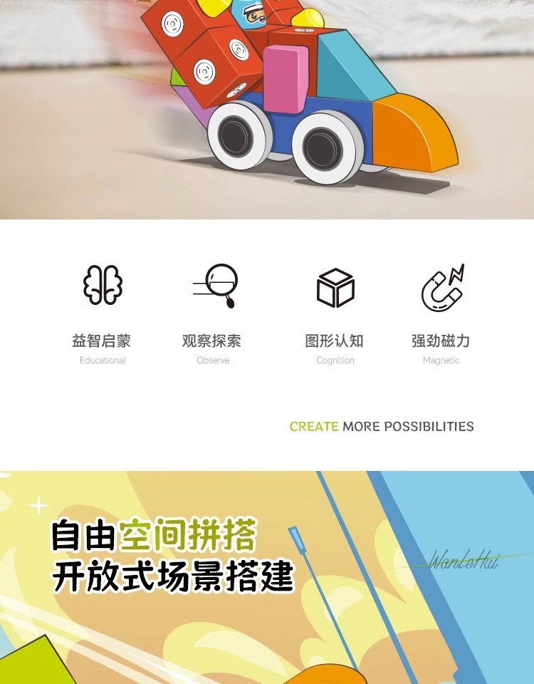 Wanlehui 조기 교육 어린이 자석 자기 빌딩 블록 EVA 폼 교육 조립 장난감 공장 직접 공급 도매스토어 가기