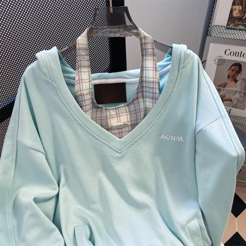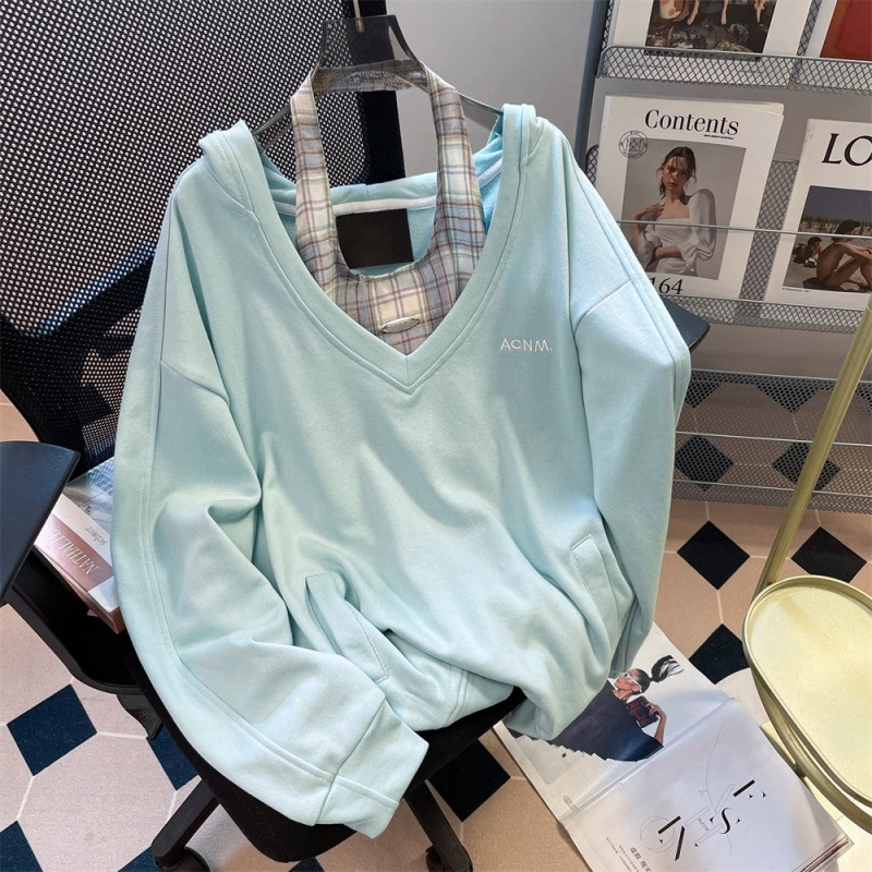 플러스 사이즈 150.00kg 한국 달콤하고 매운 목 슬링 V-칼라 후드 스웨트 셔츠 여성의 가을 틈새 디자인 투피스 재킷스토어 가기
