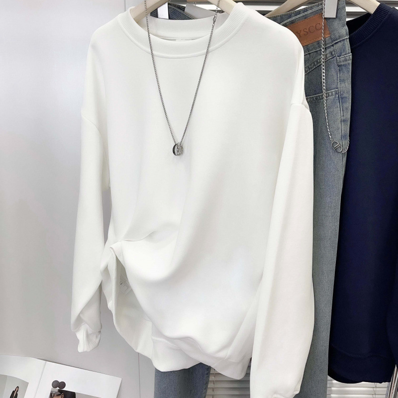 • 화이트 라이트 버전 솔리드 컬러 스웨트셔츠