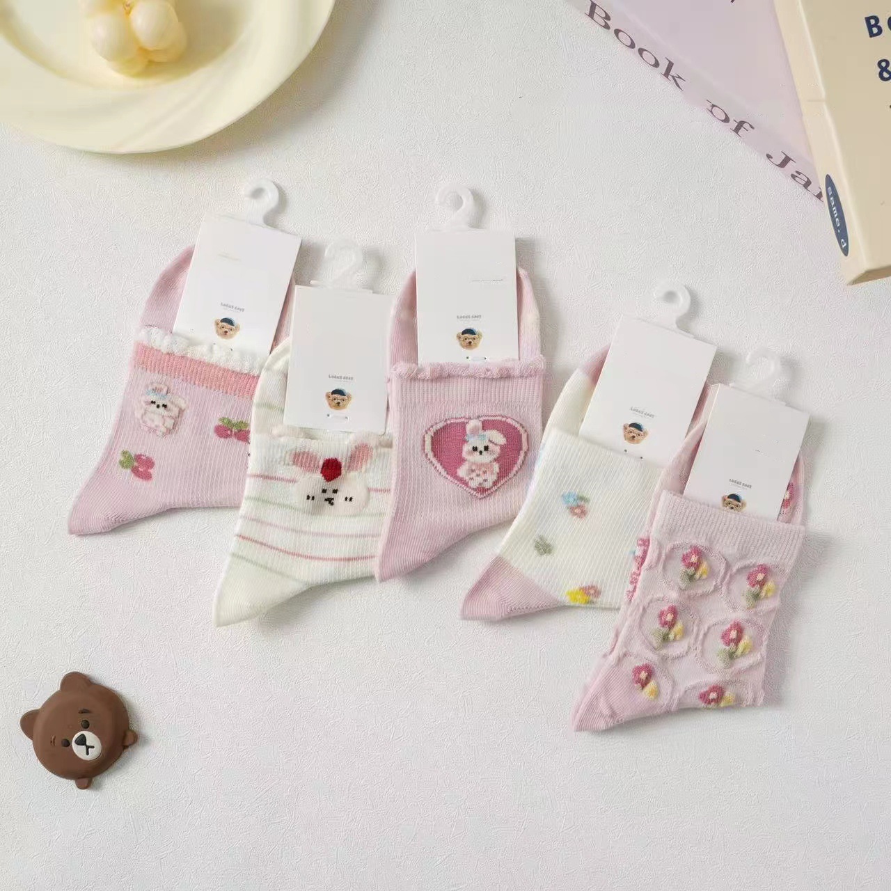 봄과 여름 새로운 어린이 튜브 메쉬 얇은 만화 코튼 양말 재고 도매 색상 귀엽고 편안한 어린이 양말스토어 가기