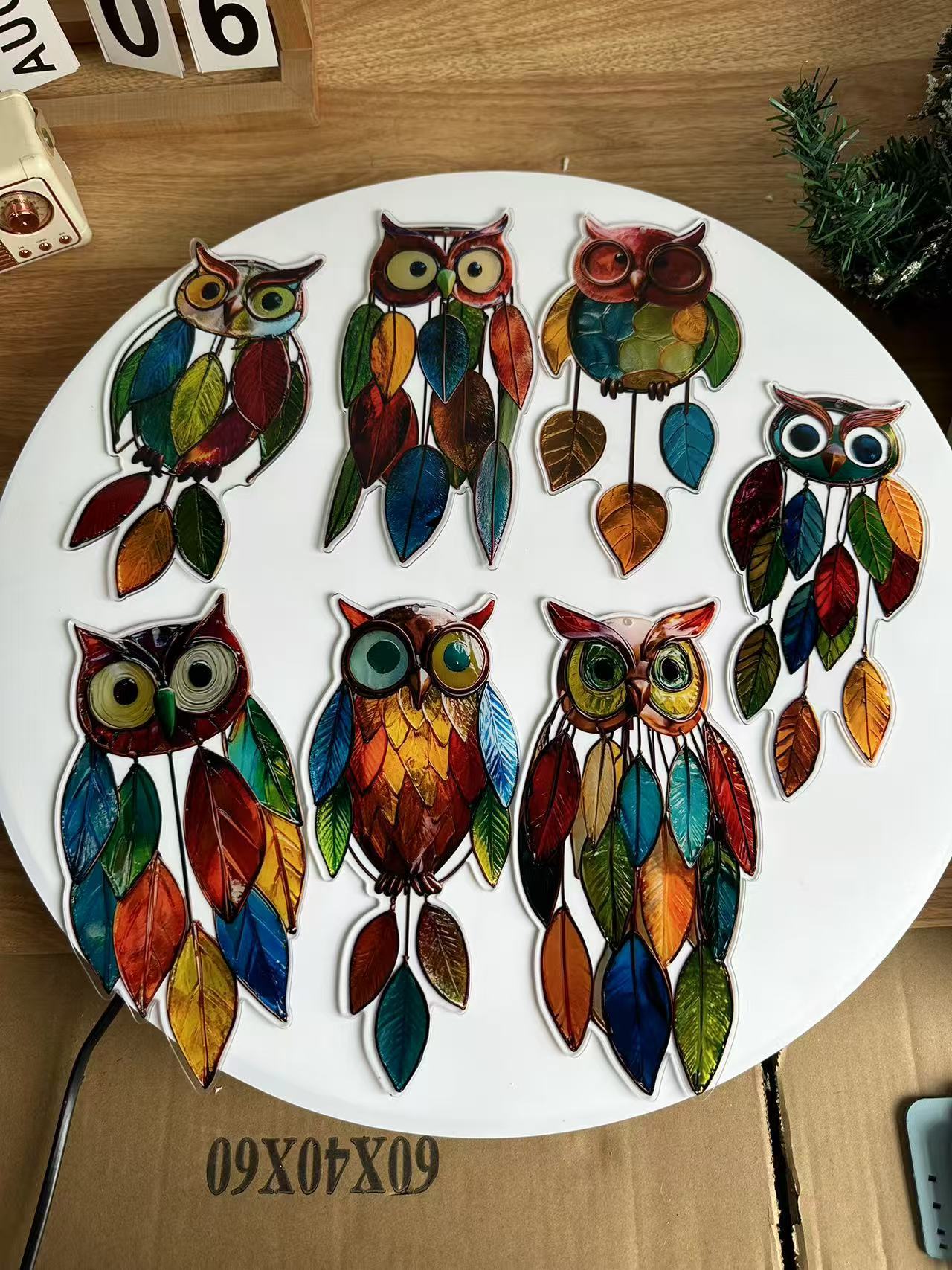 국경 새로운 아크릴 컬러 올빼미 펜던트 홈 침실 창 장식 펜던트 아크릴 공예