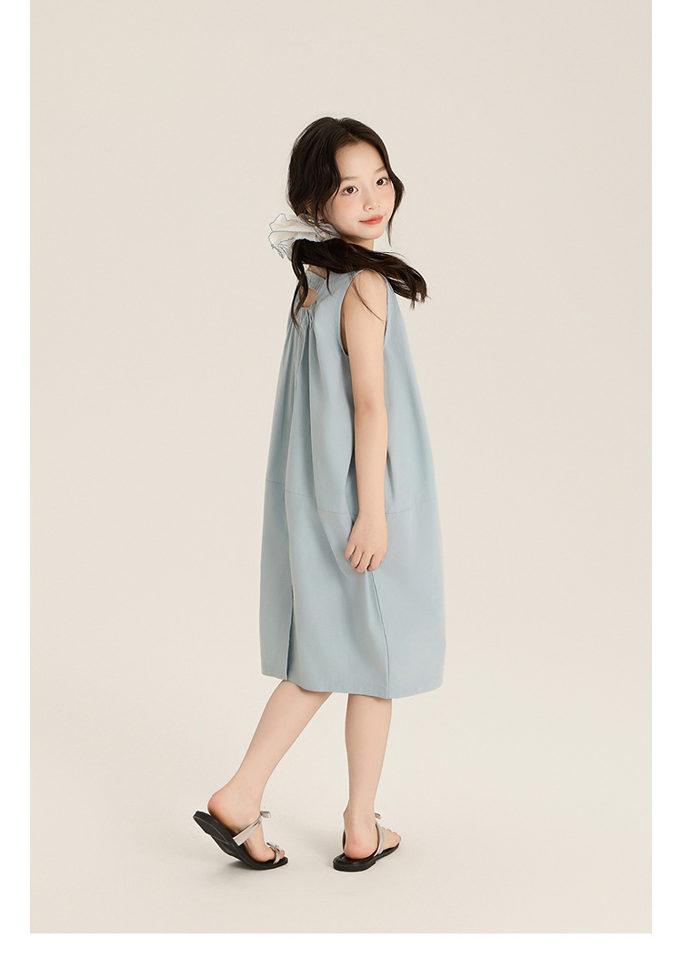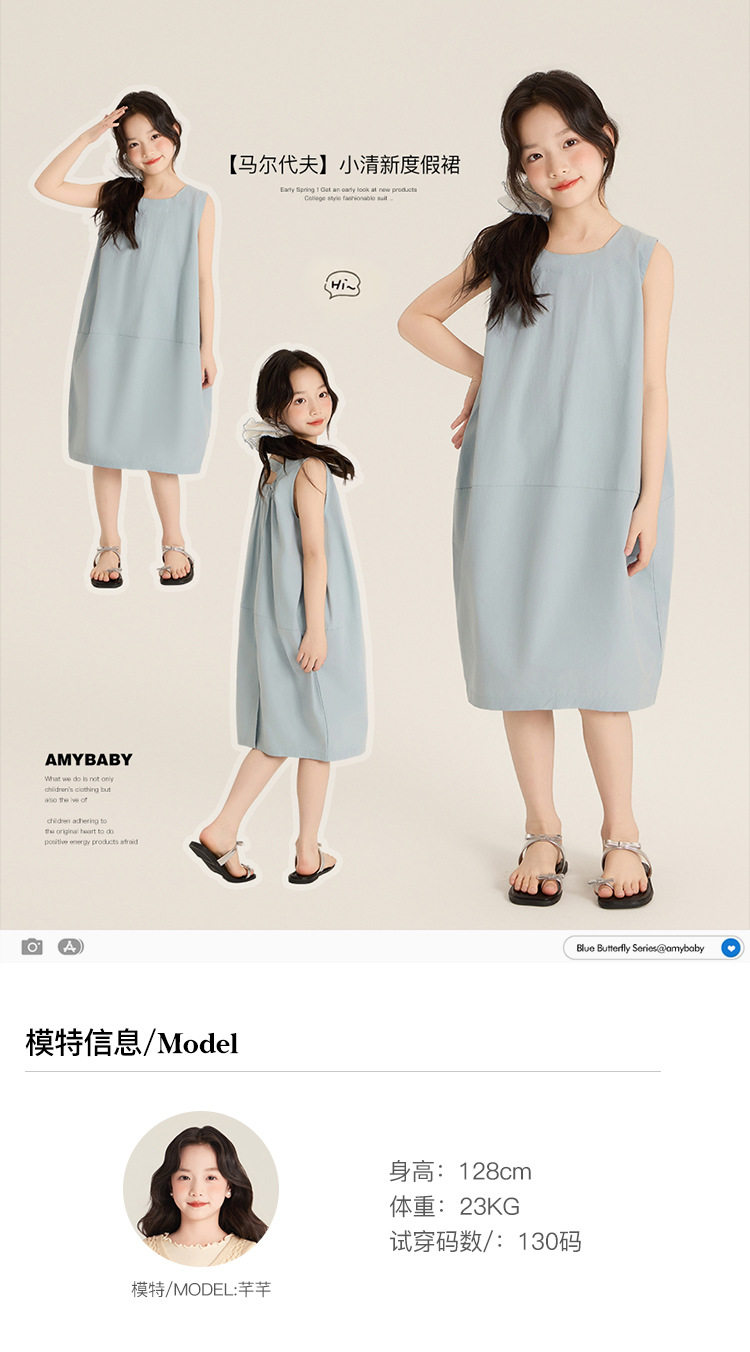 Amybaby 소녀 원피스 여름 2025 새로운 일본 시대 감소 작은 신선한 스타일 휴일 단색 스트랩 원피스스토어 가기