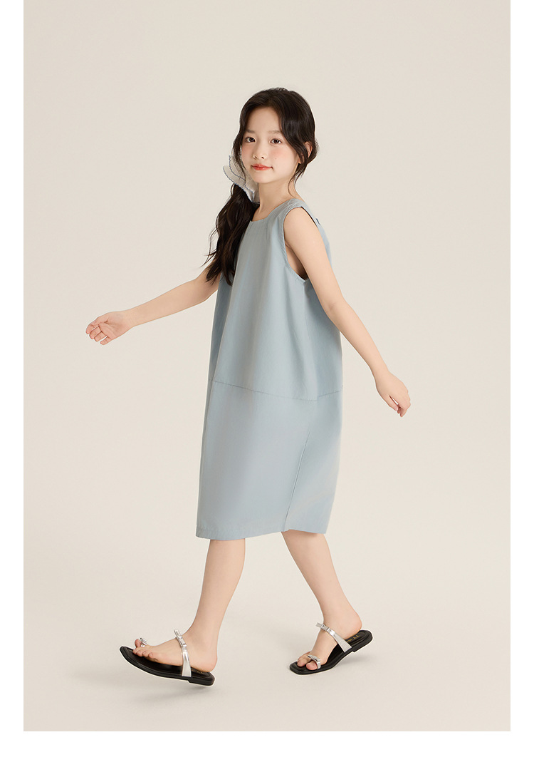 Amybaby 소녀 원피스 여름 2025 새로운 일본 시대 감소 작은 신선한 스타일 휴일 단색 스트랩 원피스