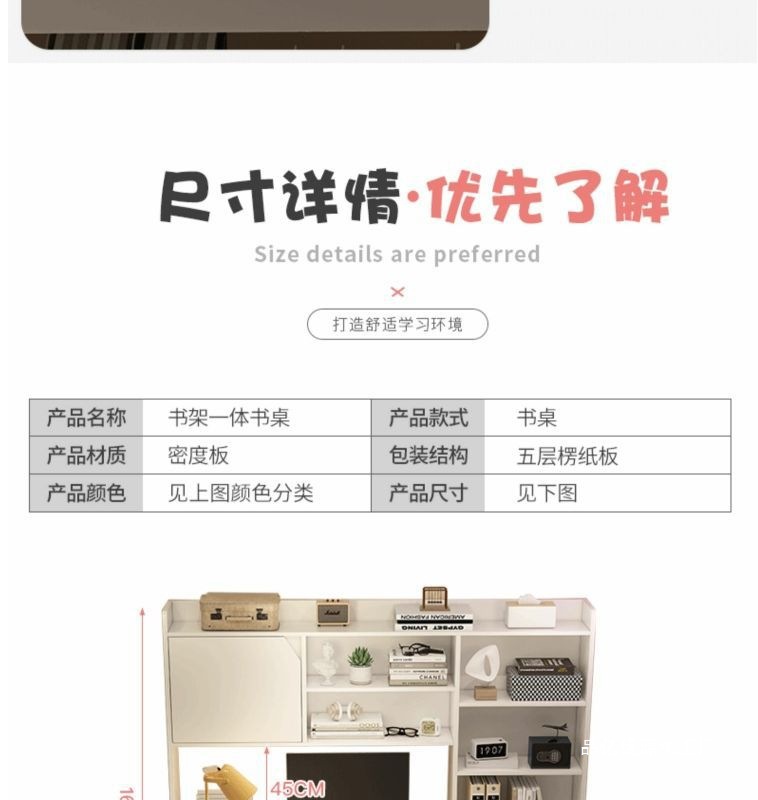가정용 통합 책상 책장 데스크탑 컴퓨터 책상 침실 간단한 학생 쓰기 연구 책상 책장 조합 테이블스토어 가기