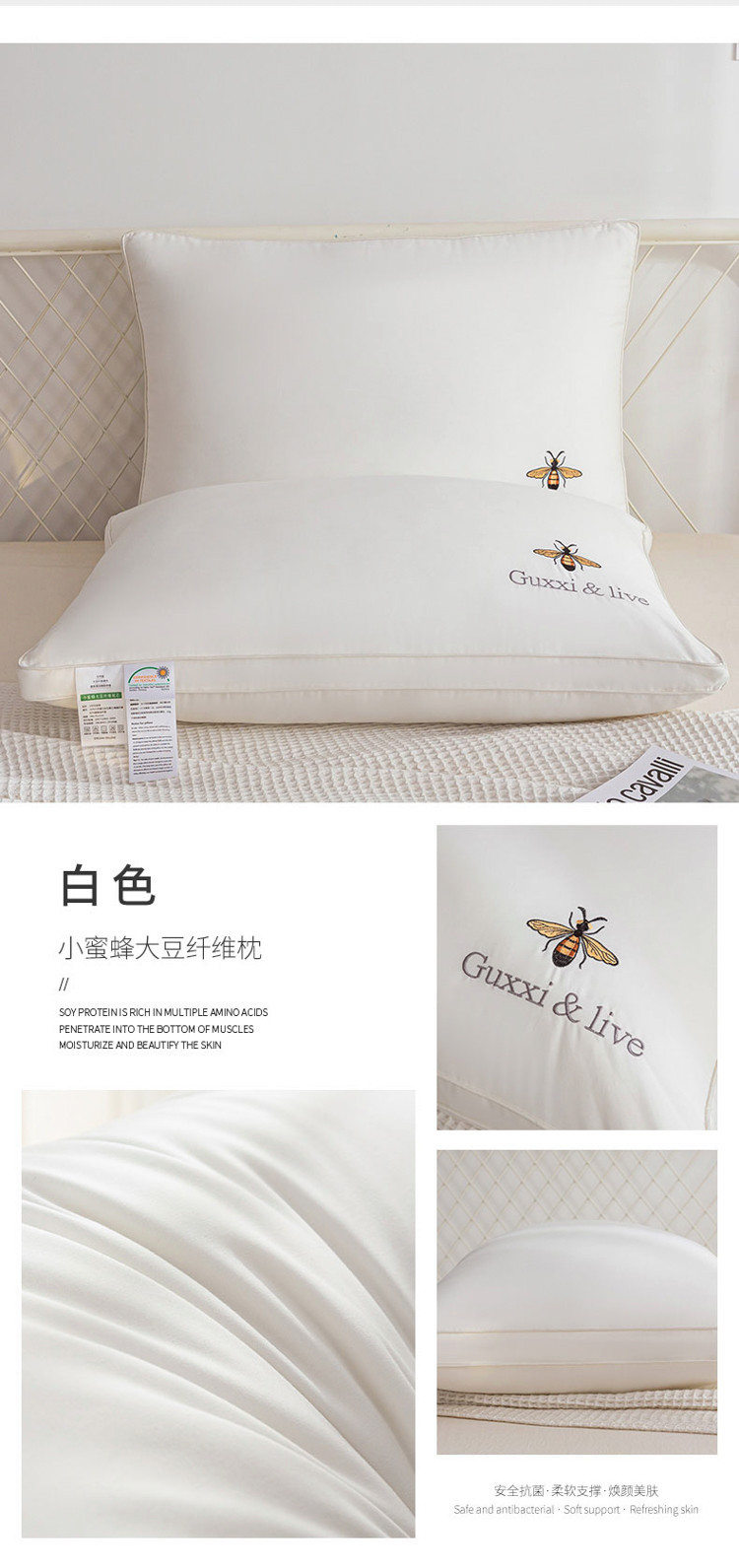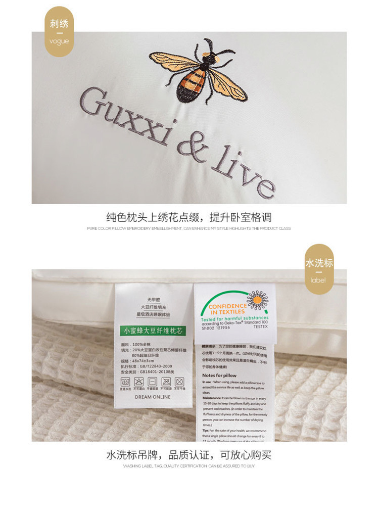 • 자수 작은 벌-화이트 [높은 베개]
