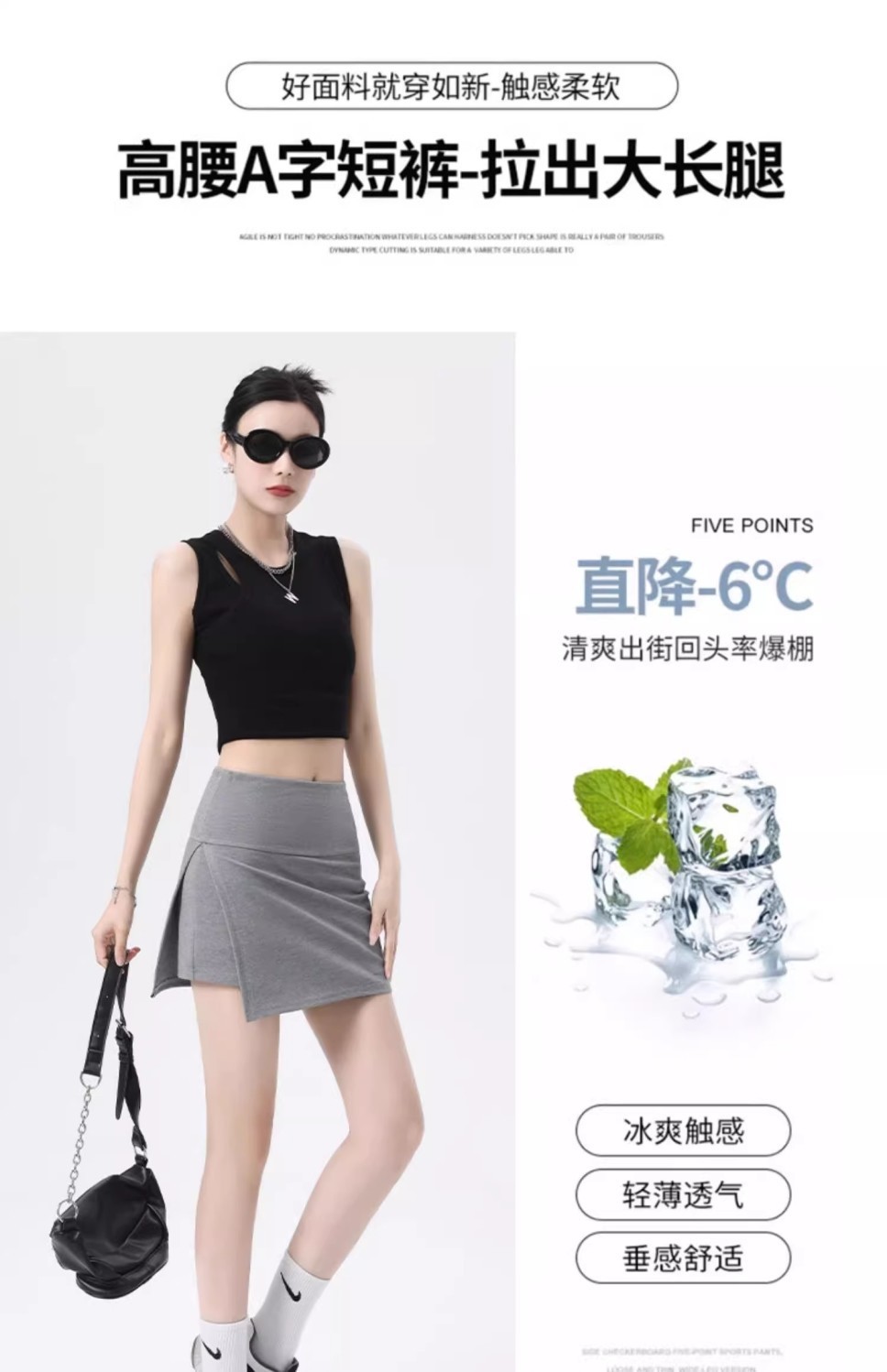 사이드 슬릿 그레이 요가 Culottes 여성 여름 안티 워킹 아메리칸 스타일 스커트 핫 소녀의 힙합 가방 스포츠 스커트스토어 가기