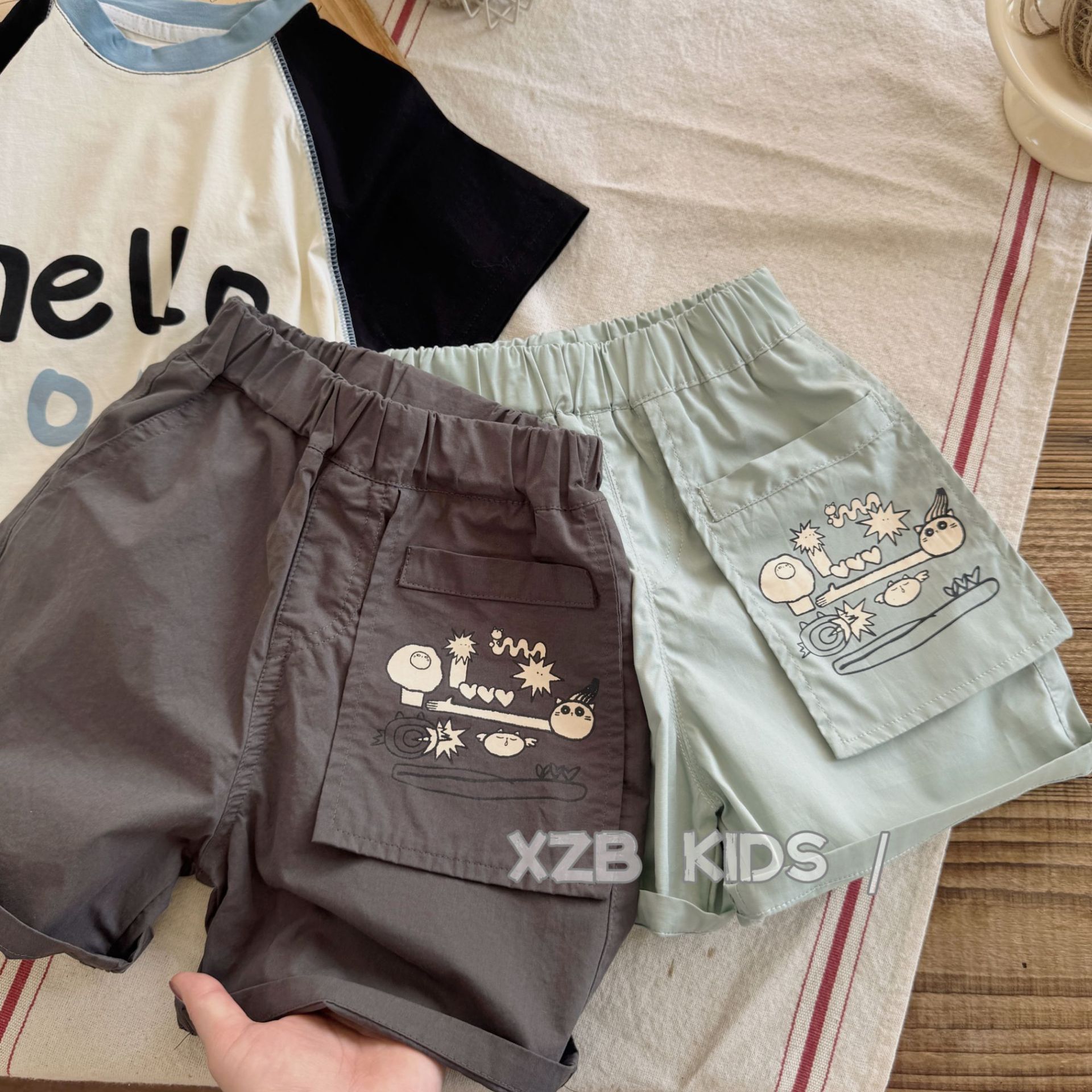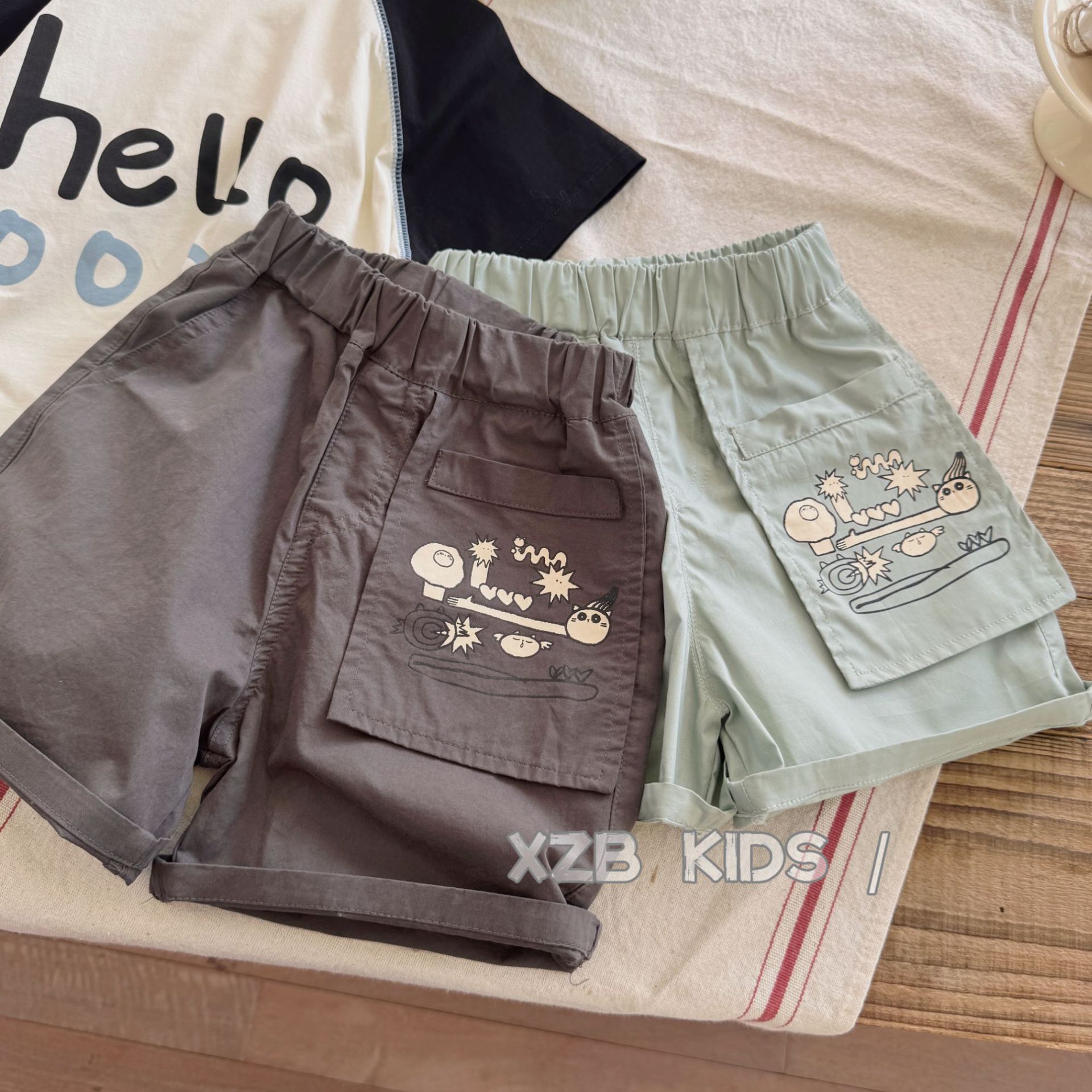 2025 새로운 소년 여름 작업복 반바지 유행 잘 생긴 유행 아기 캐주얼 바지 느슨한 얇은 바지