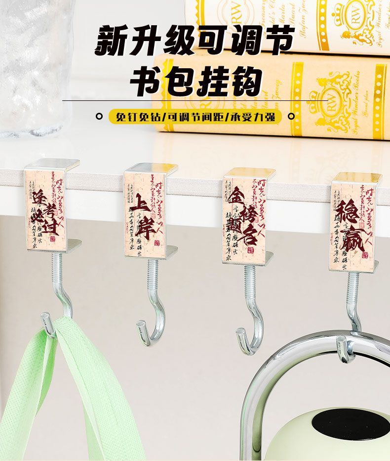 학생 책상 옆에 있는 영감을 주는 텍스트 후크, 데스크탑 초강력 내하중 학교 가방 후크, 보관 유물, 펀치 없는 가방 걸이 후크