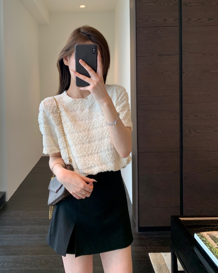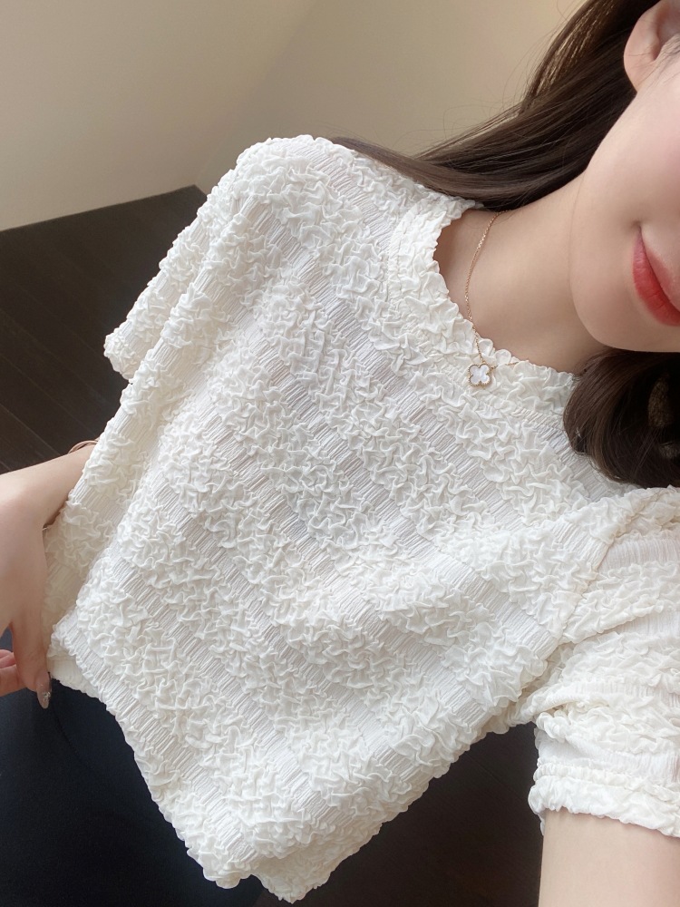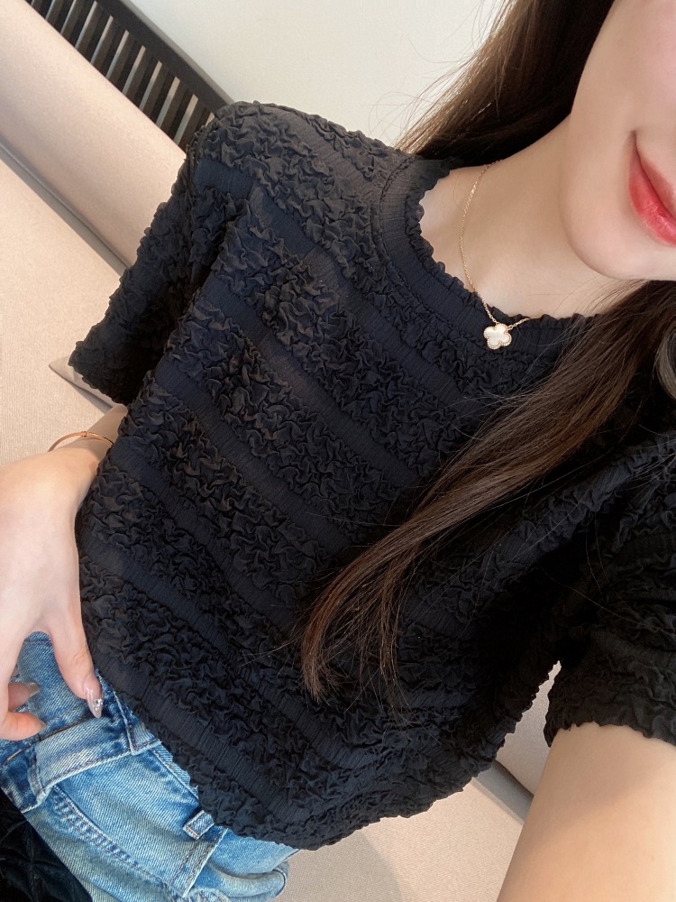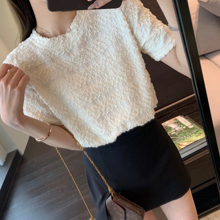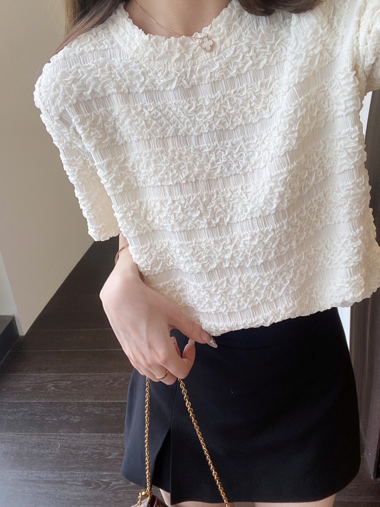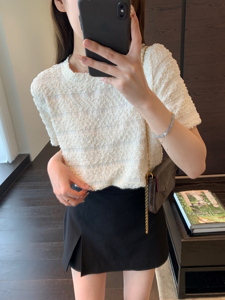 总的来说,这款法式髙J感肌理感夏季别致短款短袖上衣