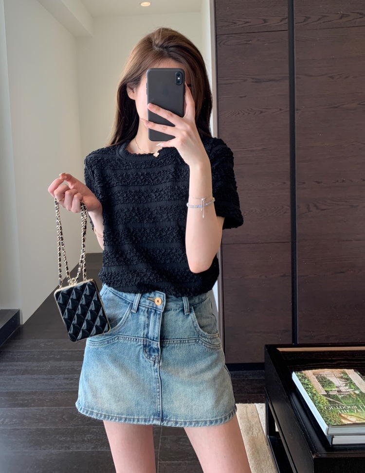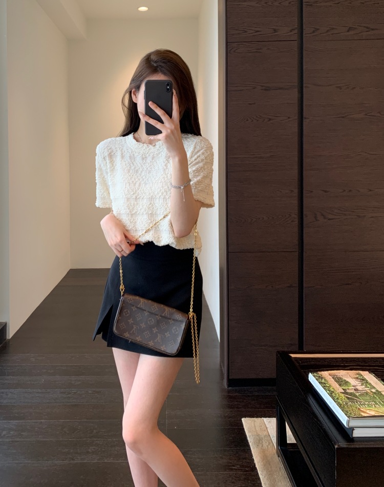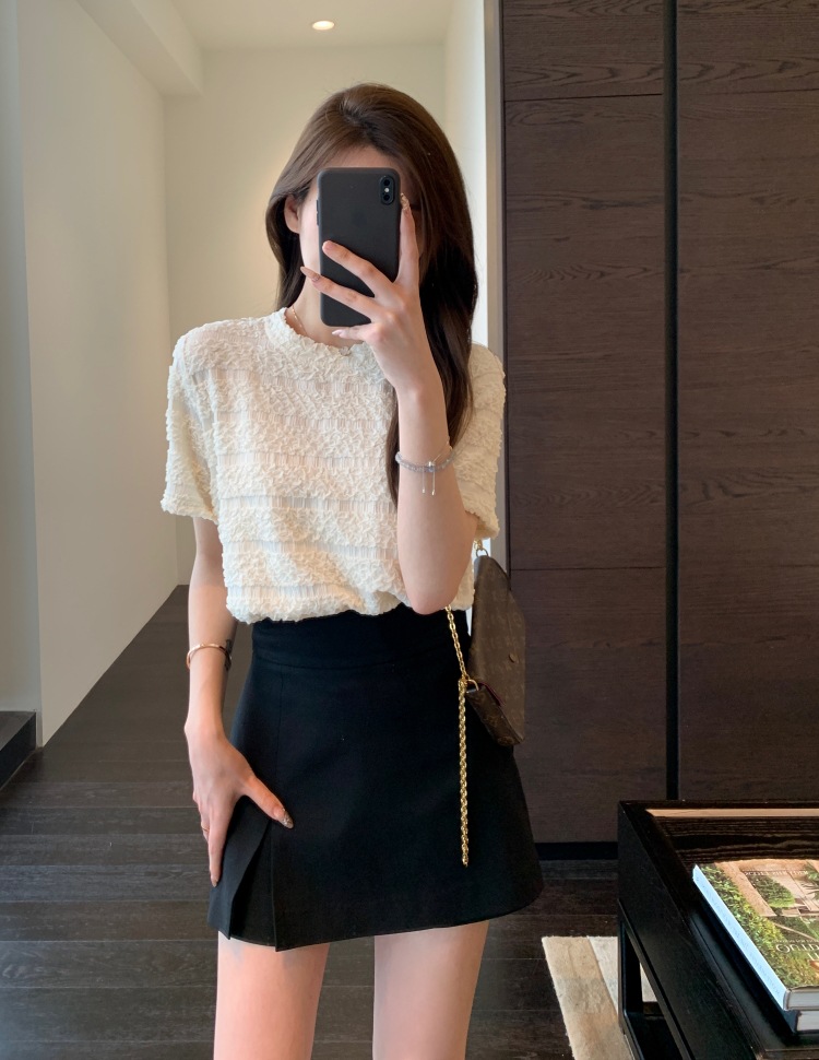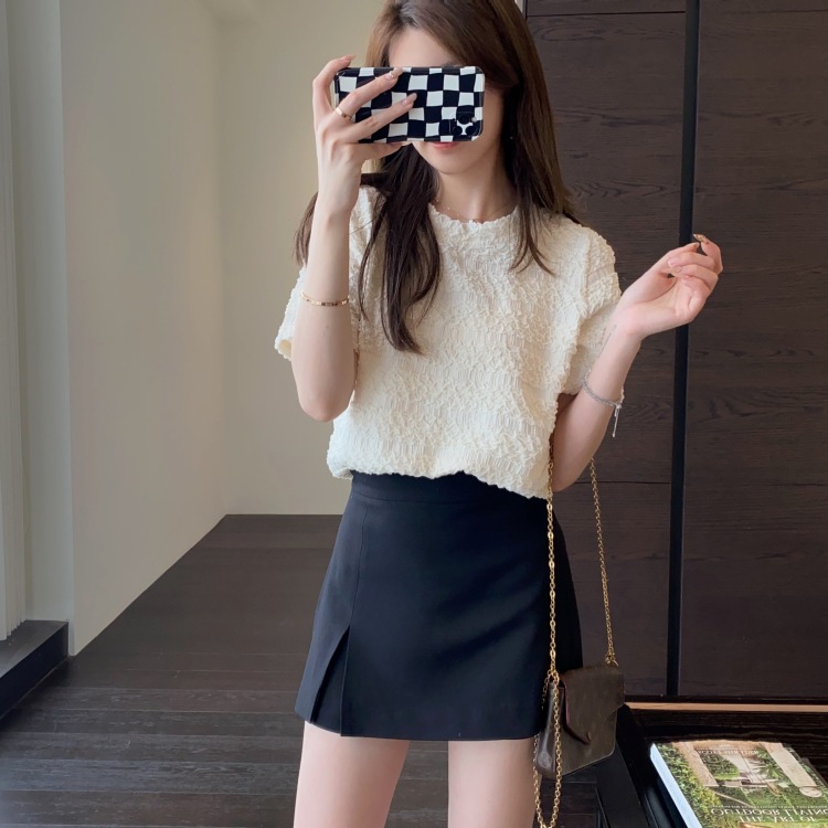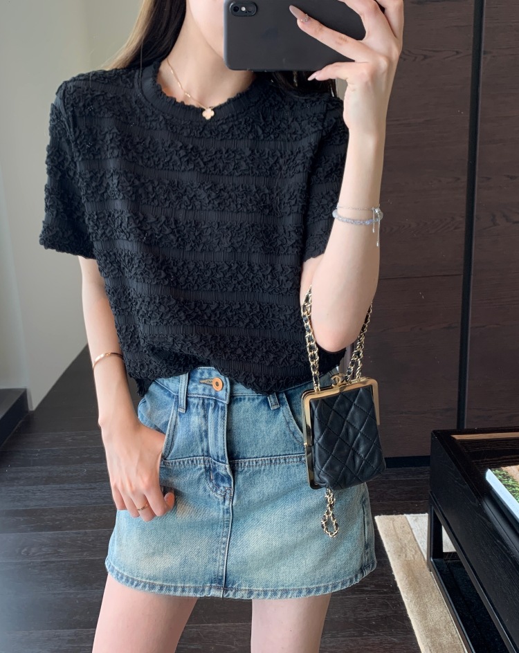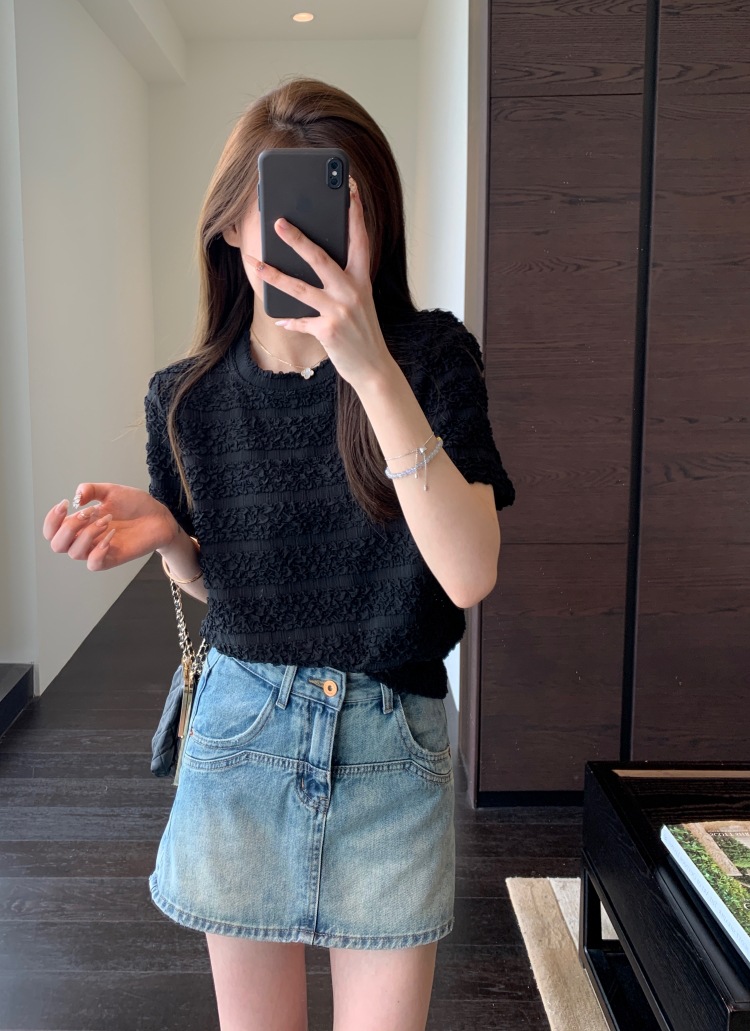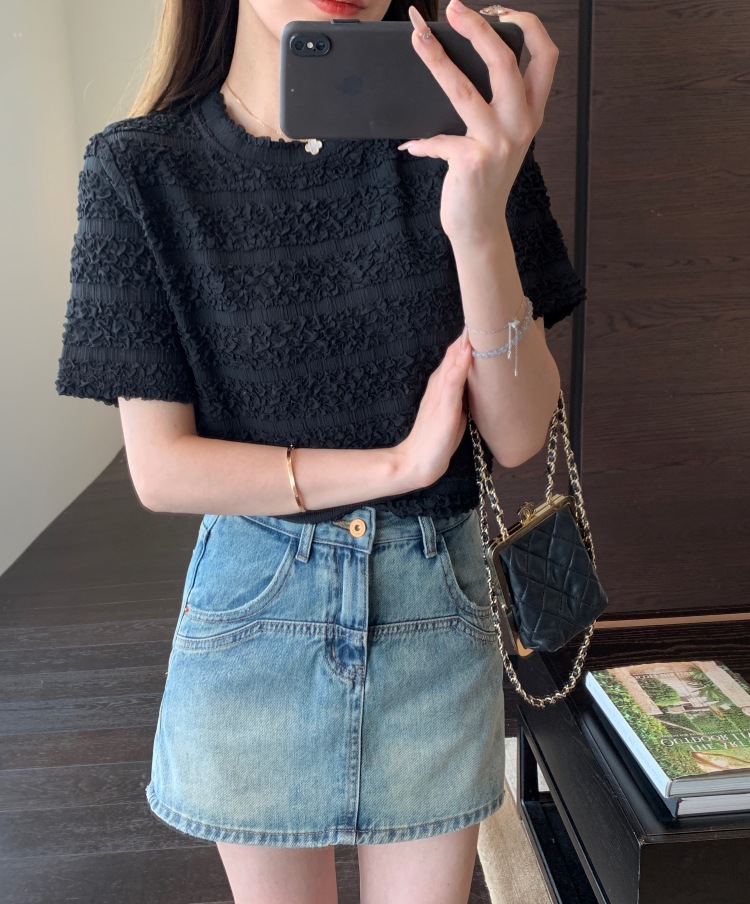 总的来说,这款法式髙J感肌理感夏季别致短款短袖上衣