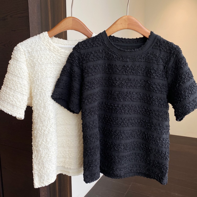 一款法式髙J感肌理感夏季别致短款短袖上衣!