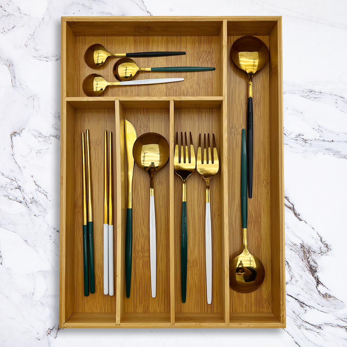 재고 국경 개폐식 식기 보관 상자 서랍 분할 대나무 마무리 상자 부엌 대나무 칼과 포크 저장 상자