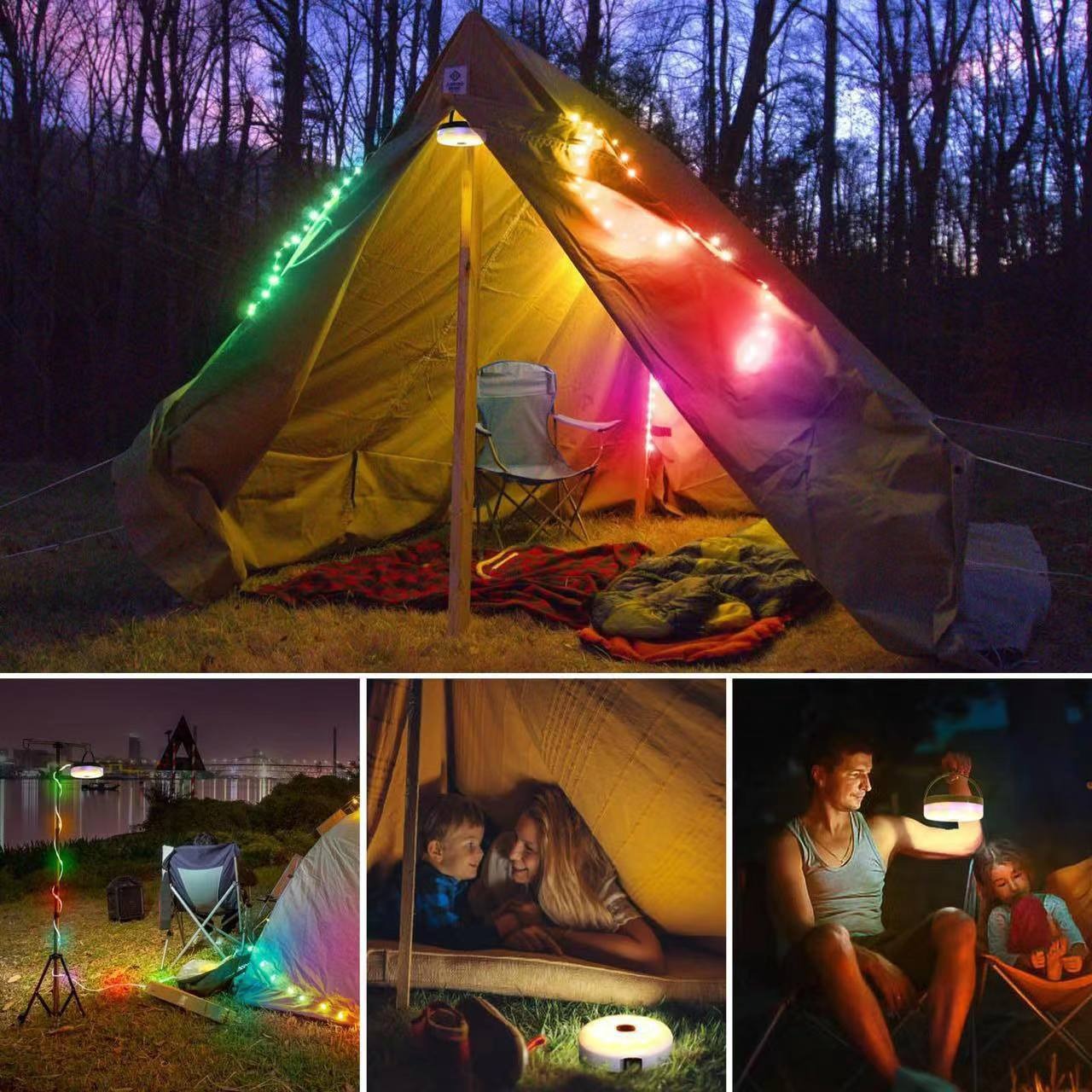 국경을 넘는 신형 LED 캠핑 램프 USB 충전식 다채로운 스트링 라이트 줄자 수납 야외 분위기 텐트 램프 캠핑 램프