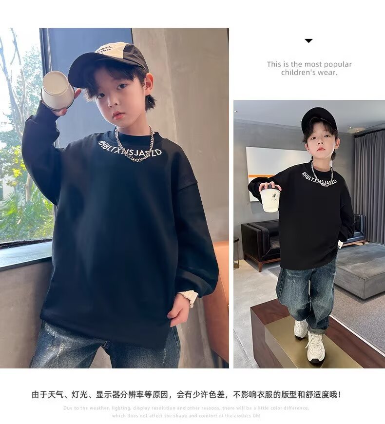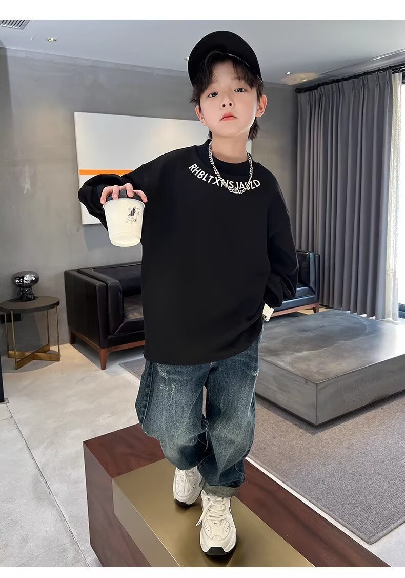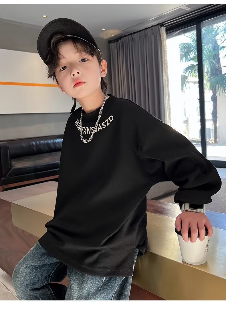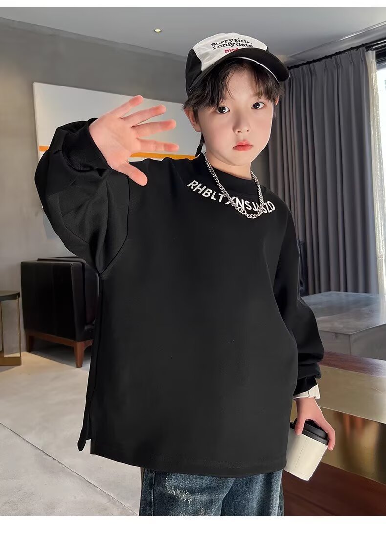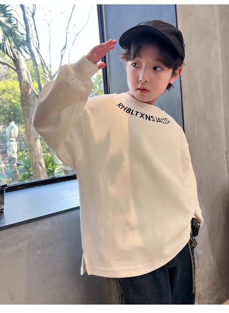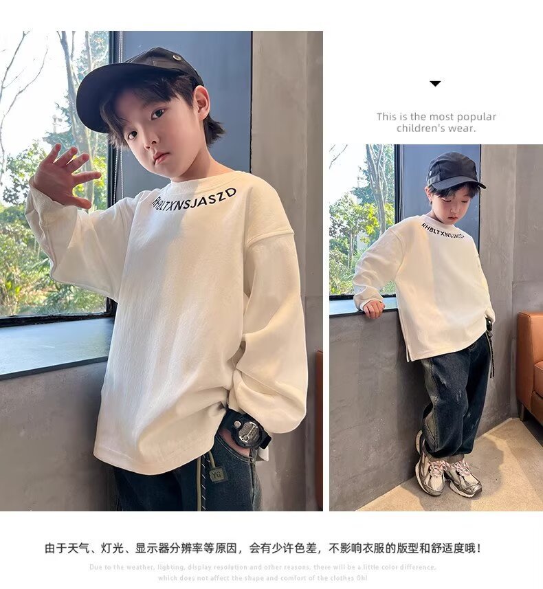 남아용 긴팔 티셔츠 2025 봄 가을 신상 아동용 봄 상의, 중대형 아동용 봄 하의 셔츠, 패셔너블하고 트렌디함스토어 가기