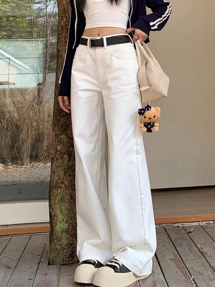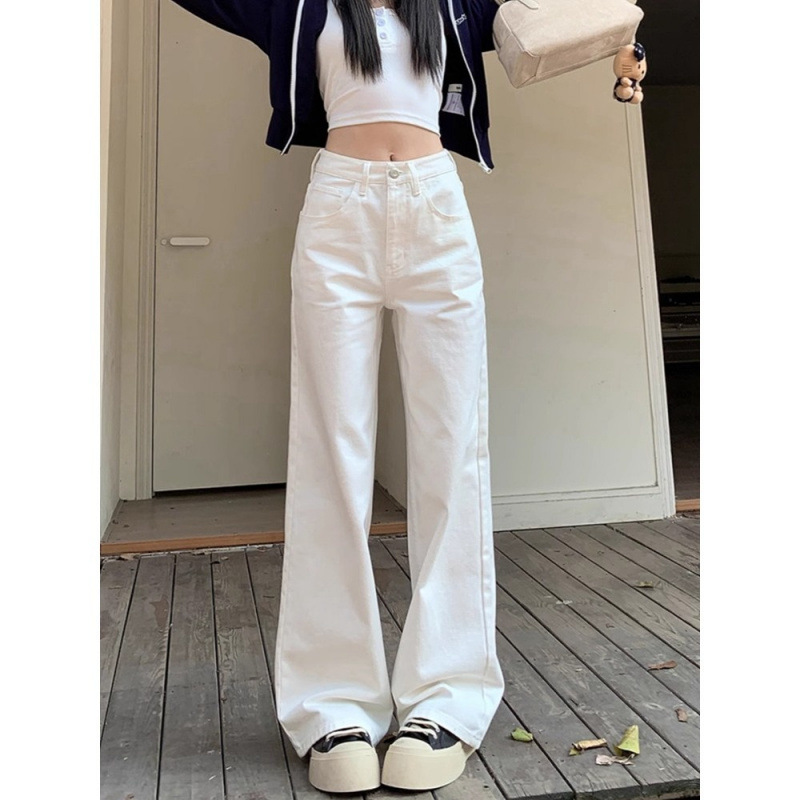 높은 허리 흰색 청바지 넓은 다리 여름 2024 새로운 스타일 작은 직선 느슨한 슬림 핏 바지스토어 가기