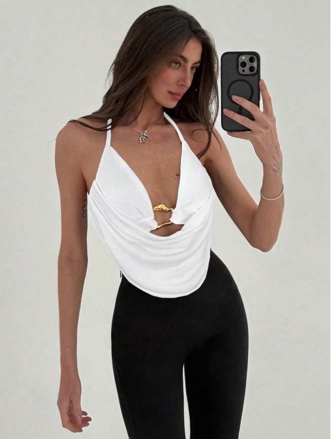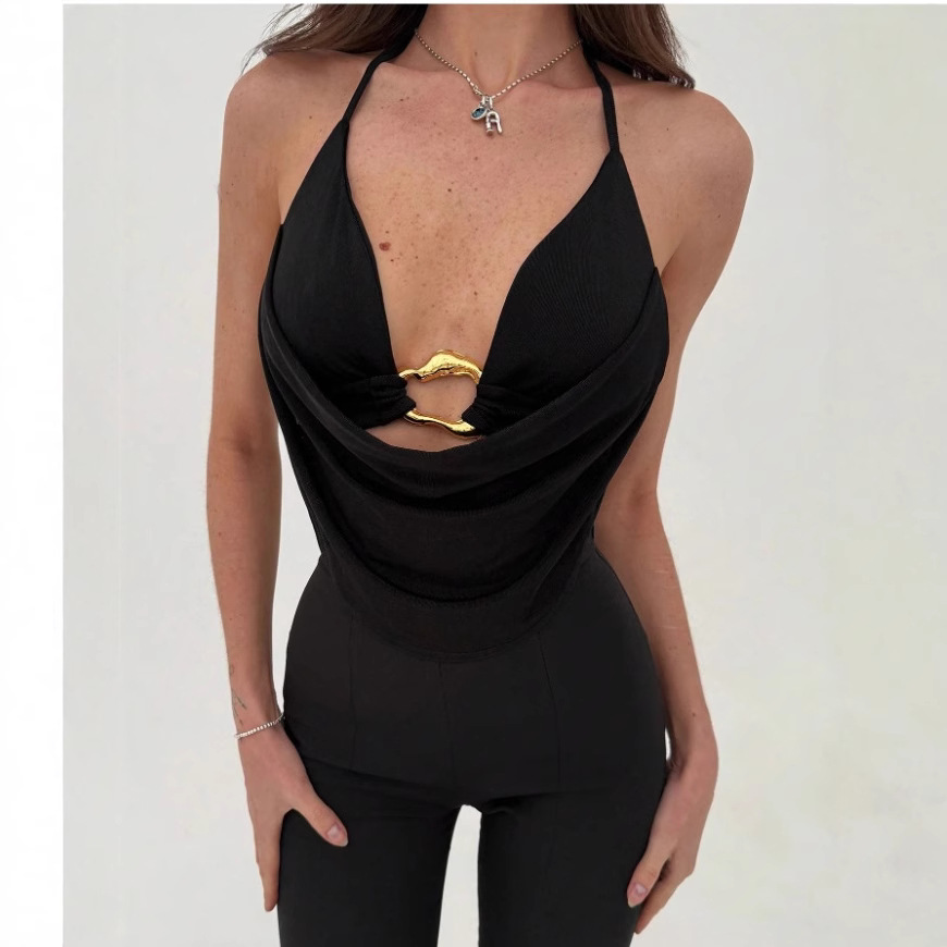 2025 유럽과 미국의 Amazon AliExpress 핫 세일 섹시한 서스펜더 금속 링 슬림 홀터넥 타이 조끼 여성용 서스펜더