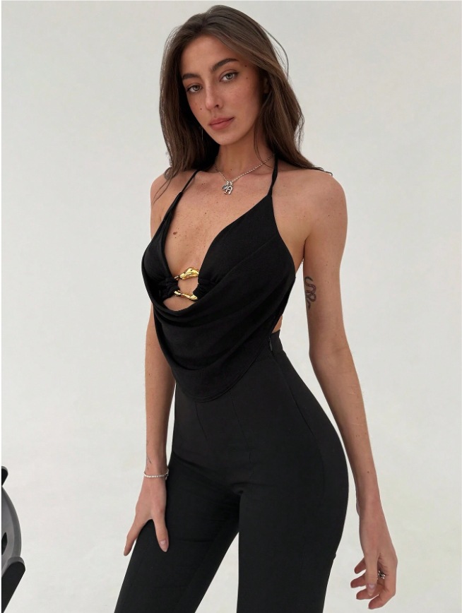 2025 유럽과 미국의 Amazon AliExpress 핫 세일 섹시한 서스펜더 금속 링 슬림 홀터넥 타이 조끼 여성용 서스펜더스토어 가기