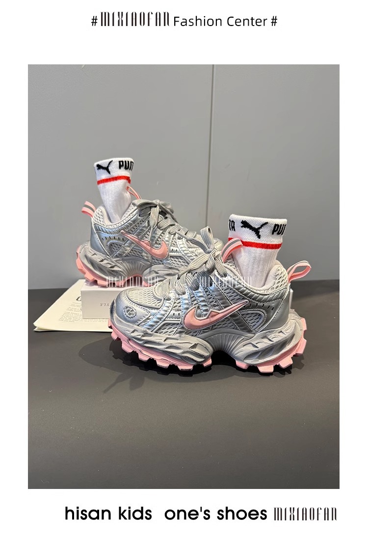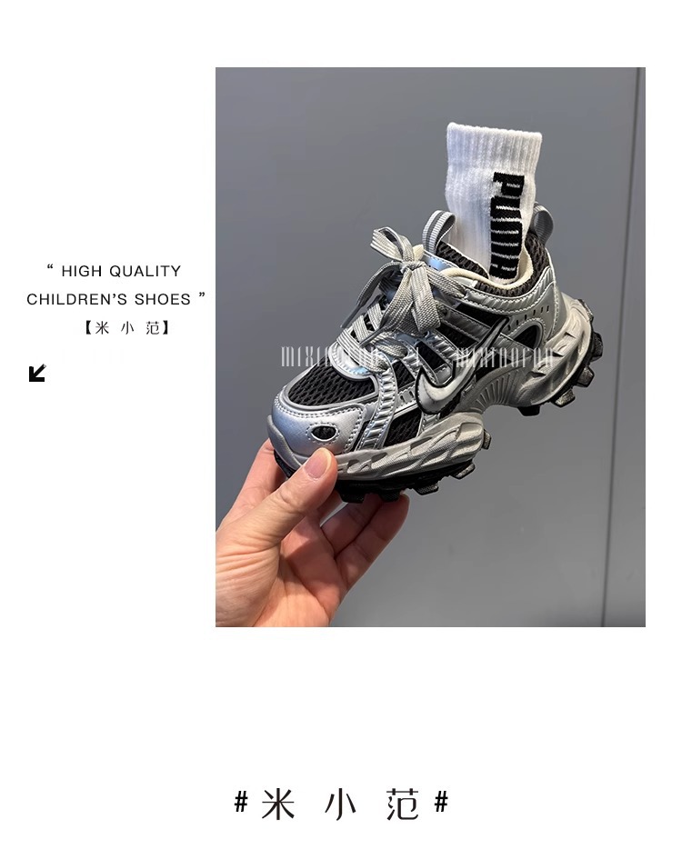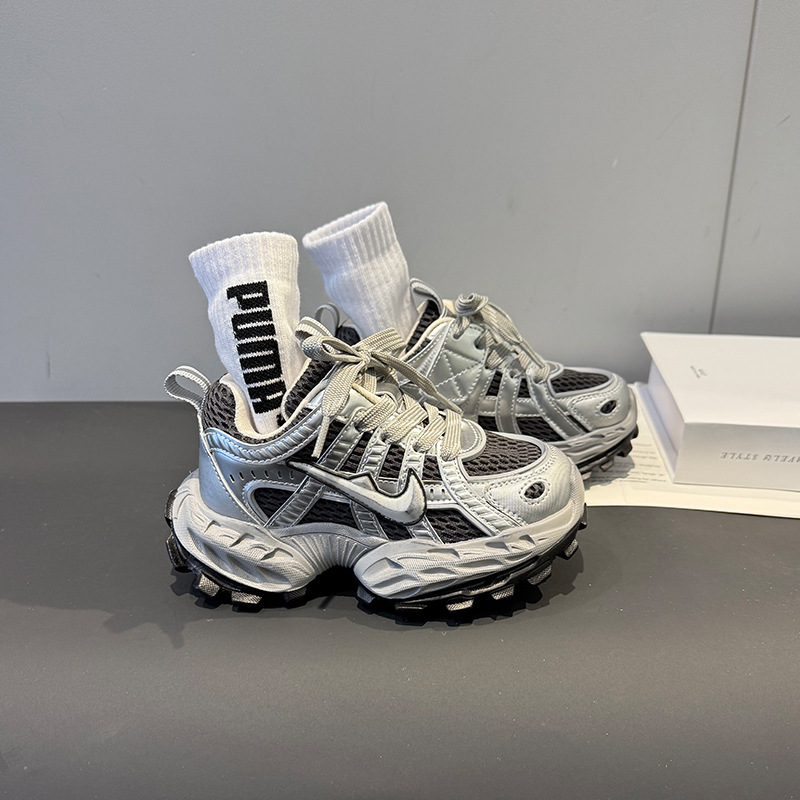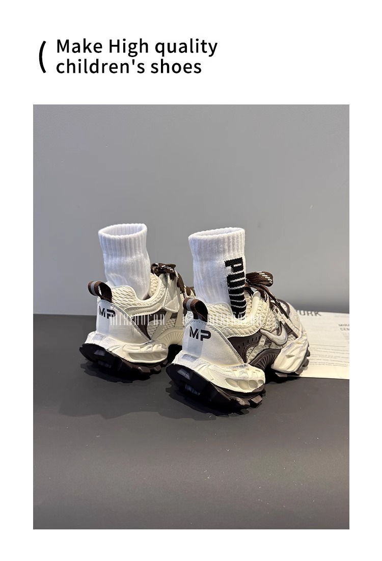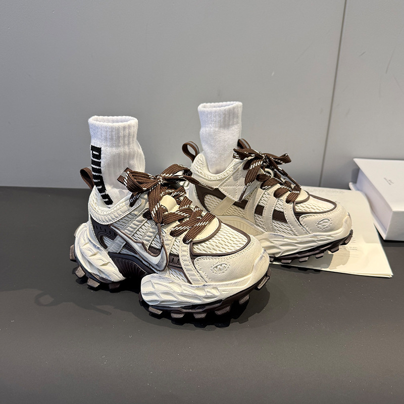 소녀의 두꺼운 밑창 토르 신발 미끄럼 방지 메쉬 통기성 운동화 어린이 달리기 신발 2025 봄 중간 및 큰 어린이 레이스 업 조수스토어 가기