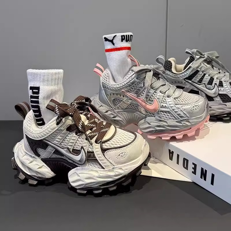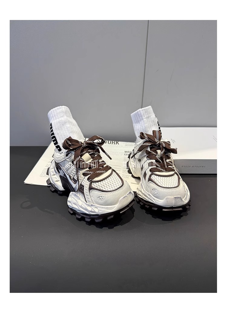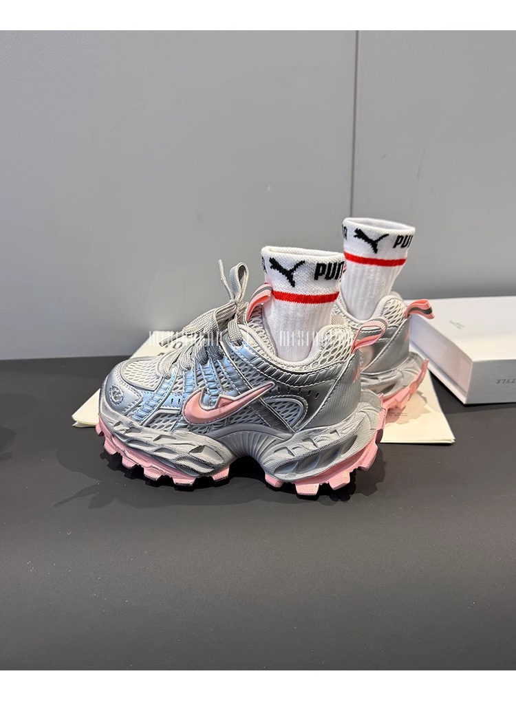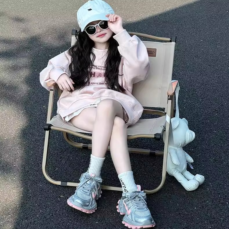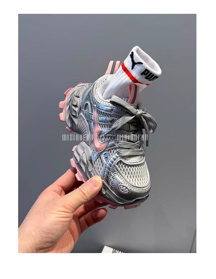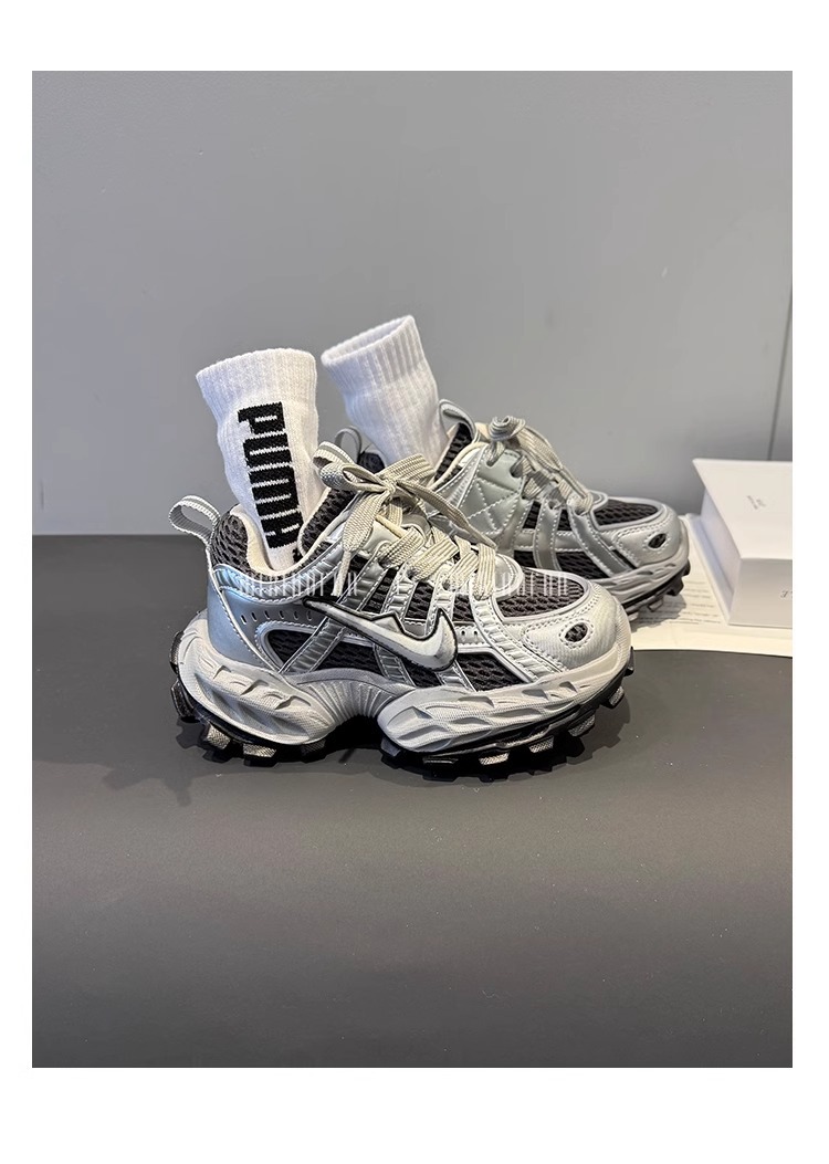 소녀의 두꺼운 밑창 토르 신발 미끄럼 방지 메쉬 통기성 운동화 어린이 달리기 신발 2025 봄 중간 및 큰 어린이 레이스 업 조수스토어 가기