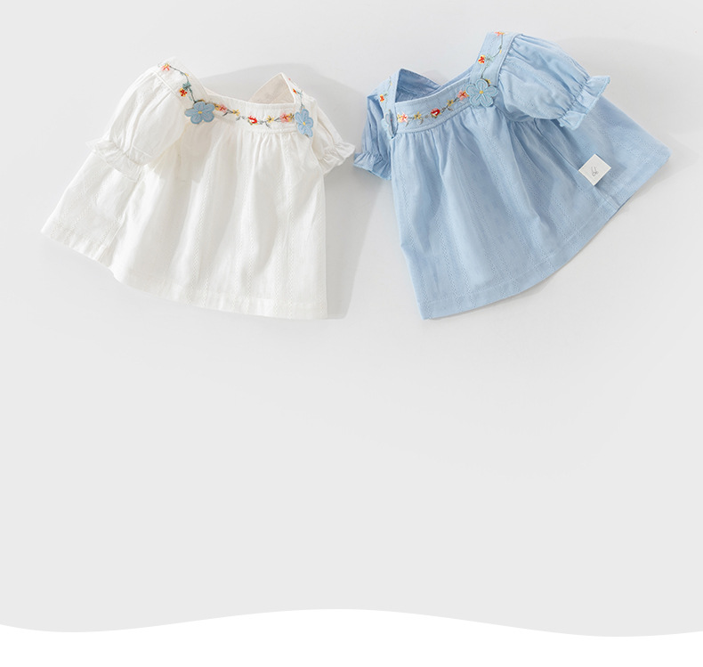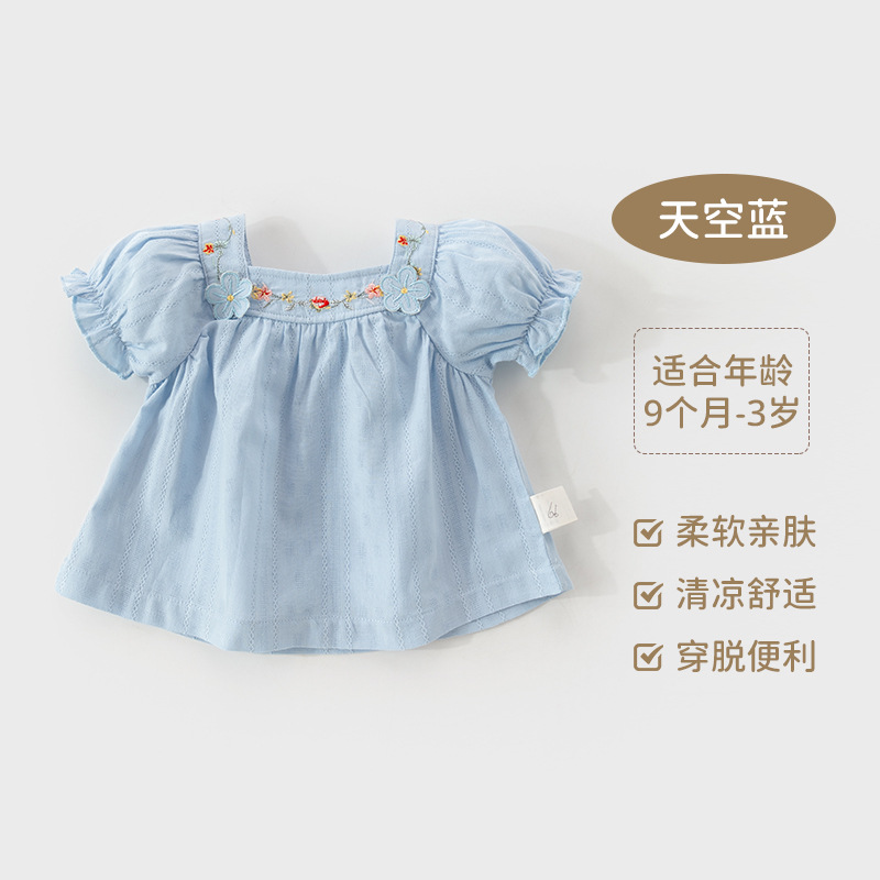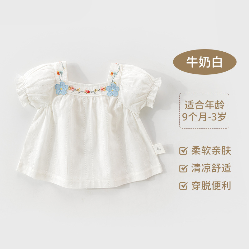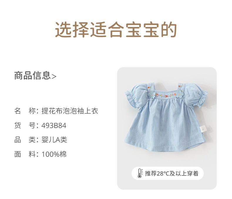 아기 옷 여름 얇은 아기 반팔 싱글 탑 여성의 아기 티셔츠 퍼프 소매 여름 탑스토어 가기