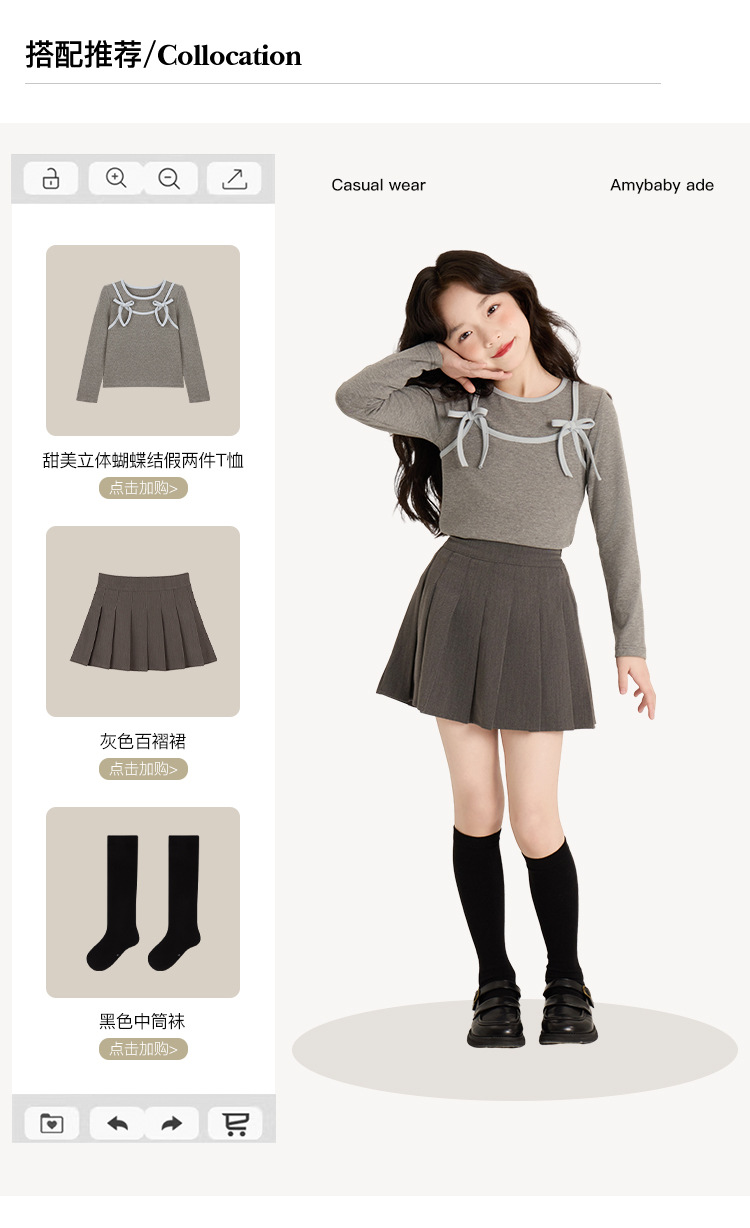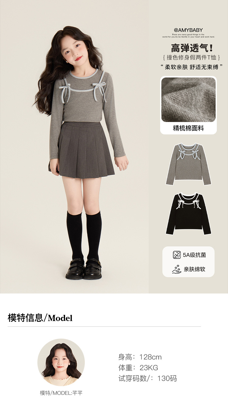 Amybaby Girls 'Top Spring 2025 새로운 유행 대비 레이스 업 활 가짜 투피스 탑스토어 가기