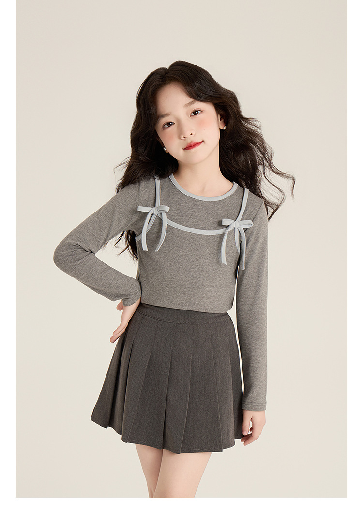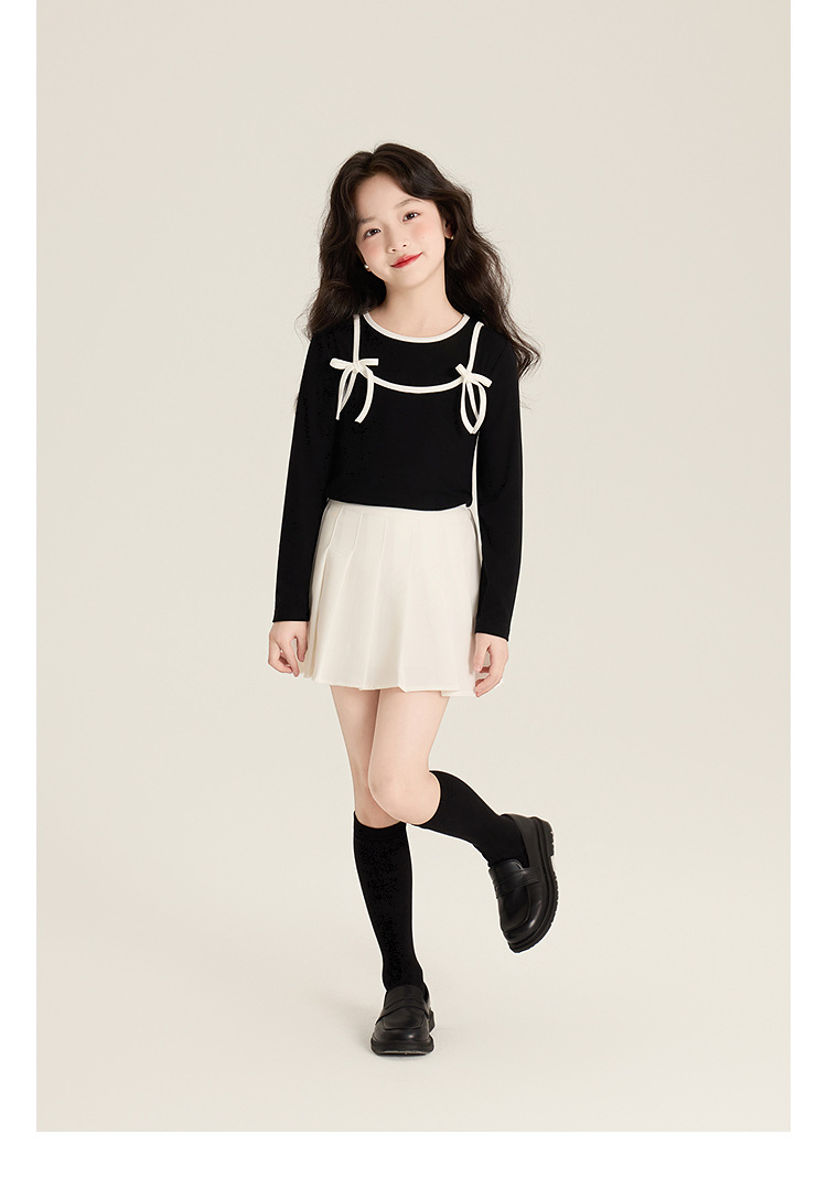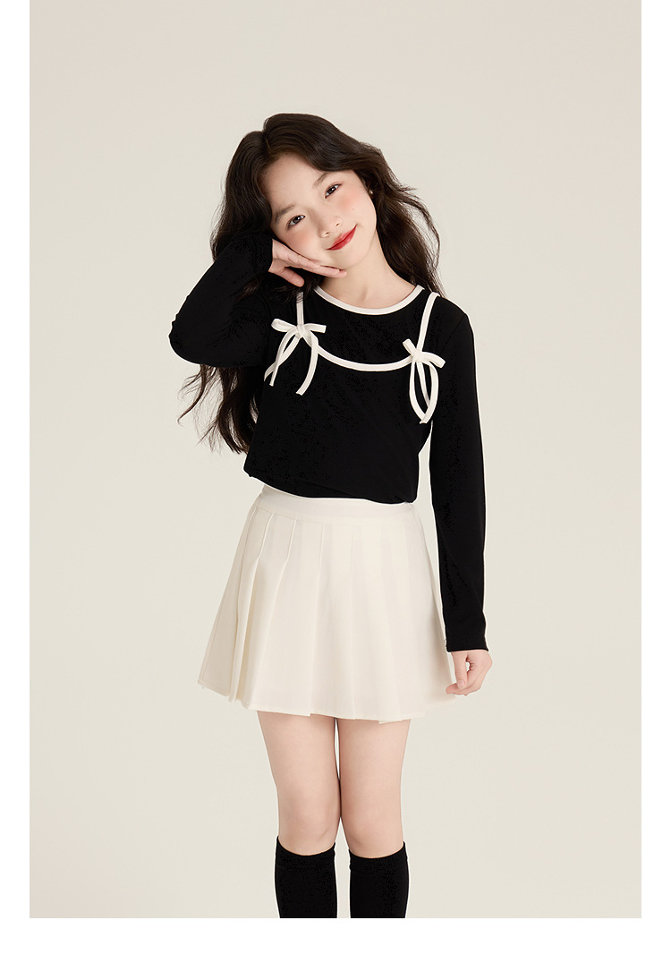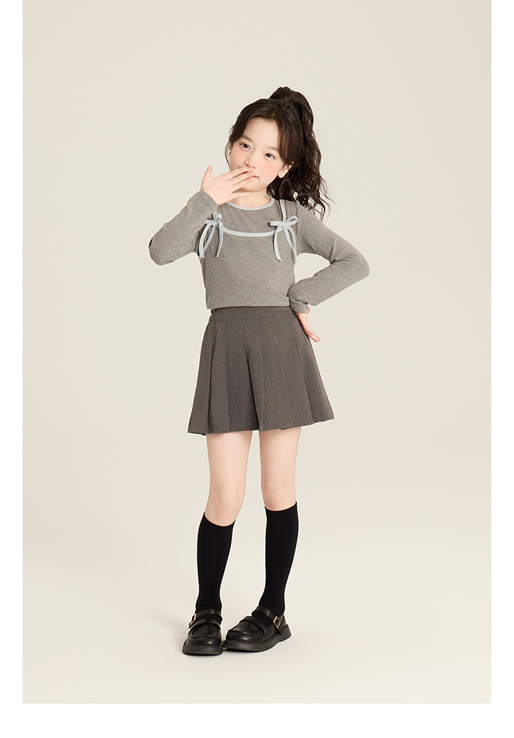 Amybaby Girls 'Top Spring 2025 새로운 유행 대비 레이스 업 활 가짜 투피스 탑