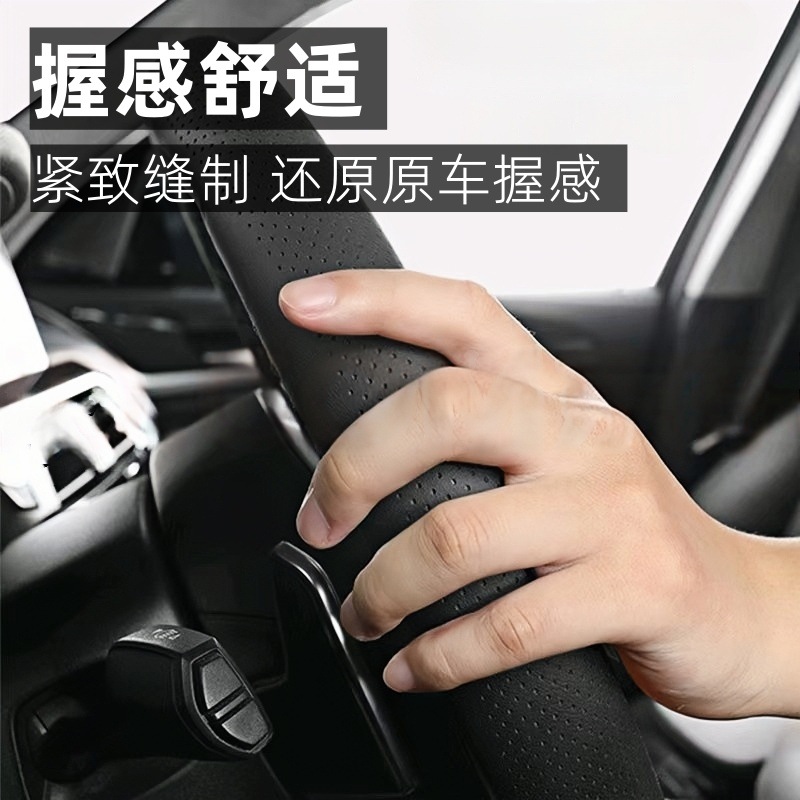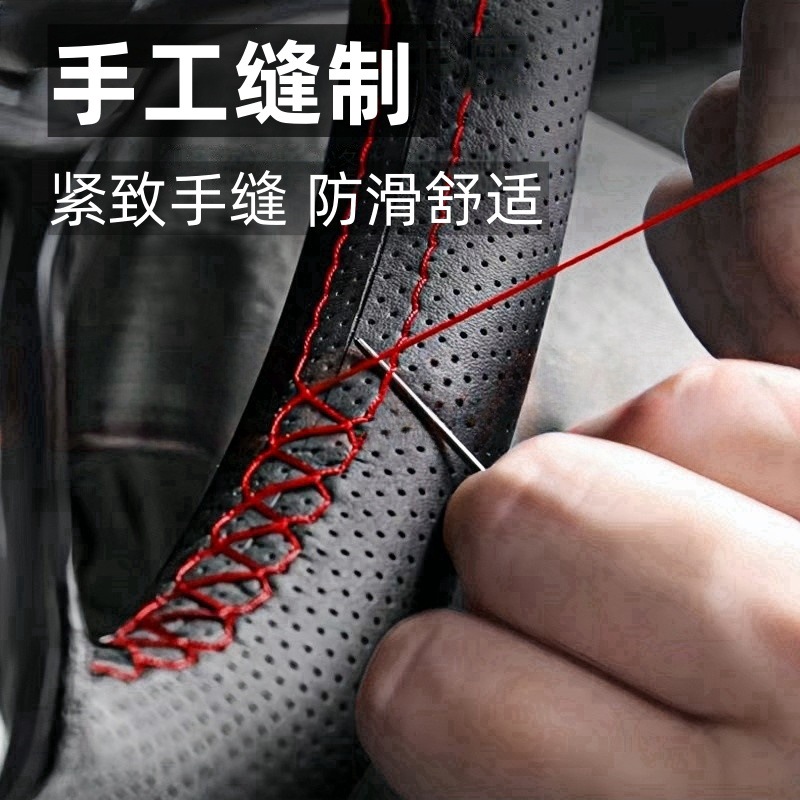 자동차 핸들 커버, 남성용 및 여성용 핸드 스티치 천연 가죽, 사계절 사용 가능한 범용 소가죽 핸드메이드 가죽 커버, 미끄럼 방지 스티치 핸들 커버