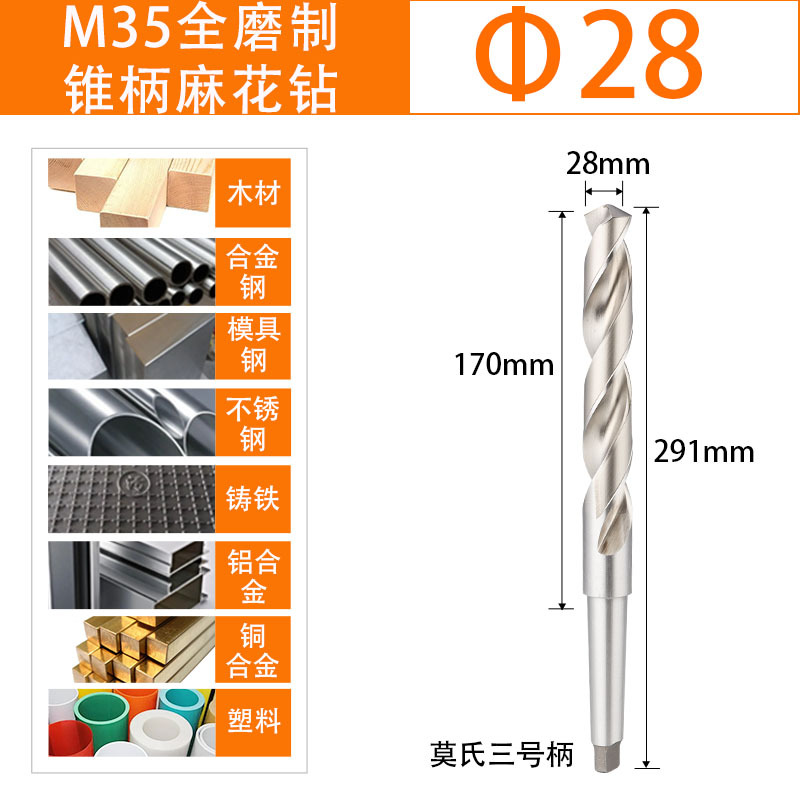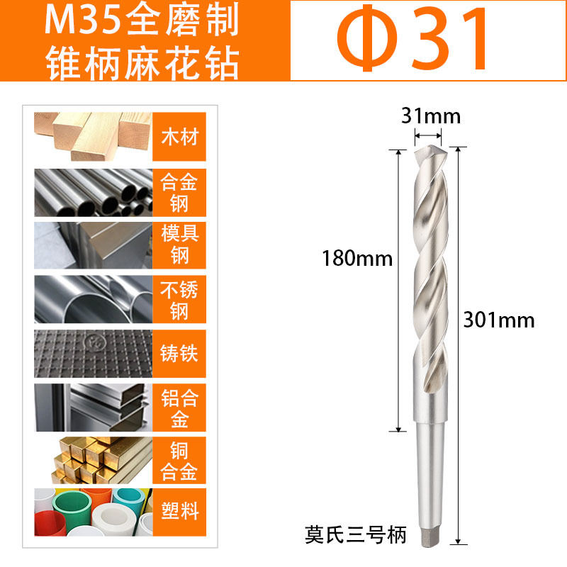 M35 코발트 함유 콘 핸들 트위스트 드릴 스테인레스 스틸 고속 강철 모스 드릴 비트 펀칭 터닝 헤드 고경도 확장스토어 가기