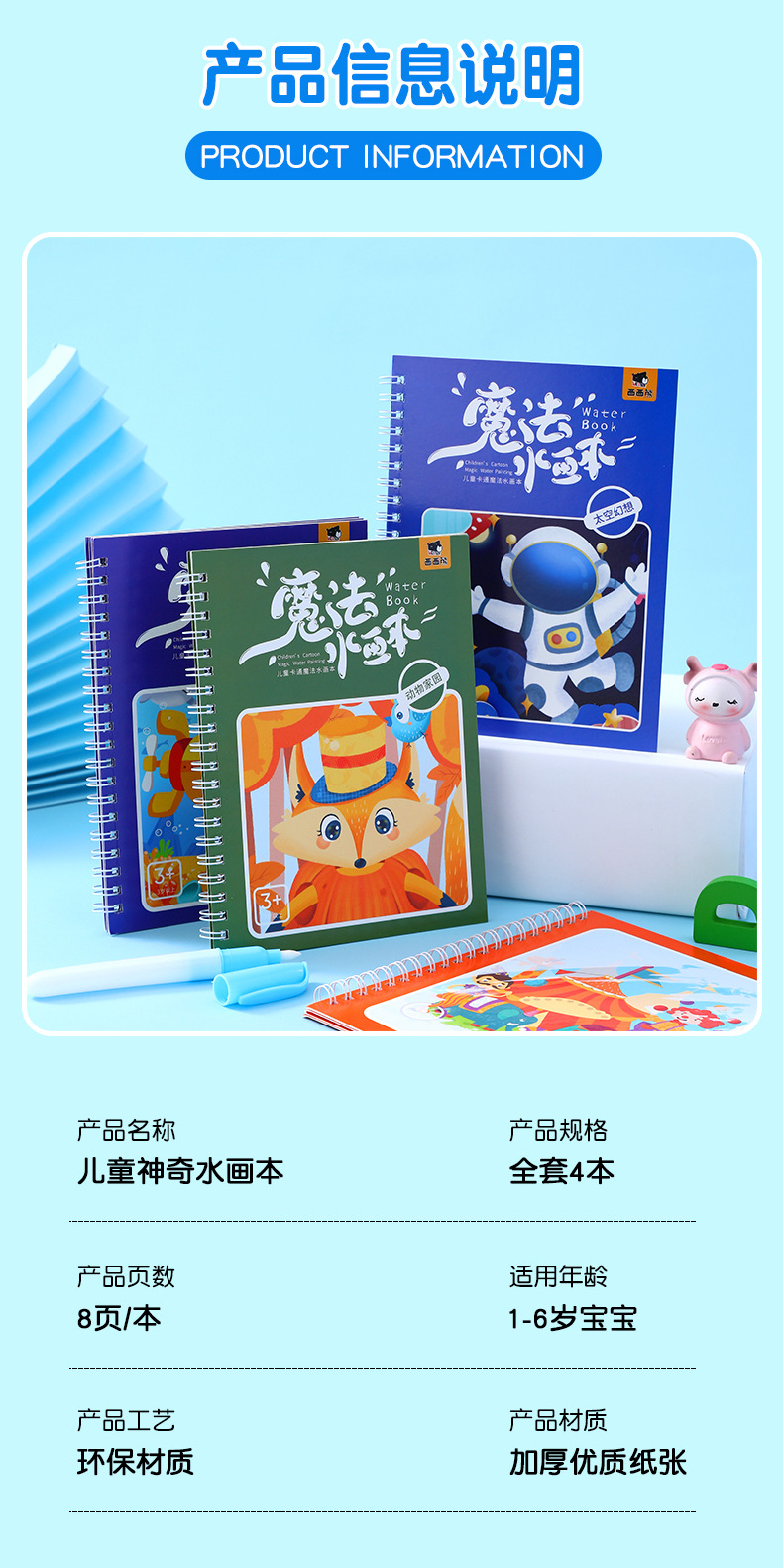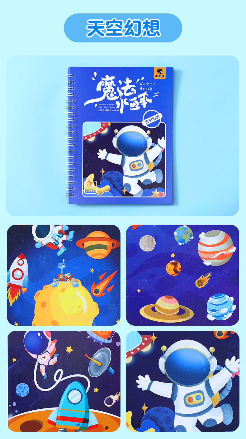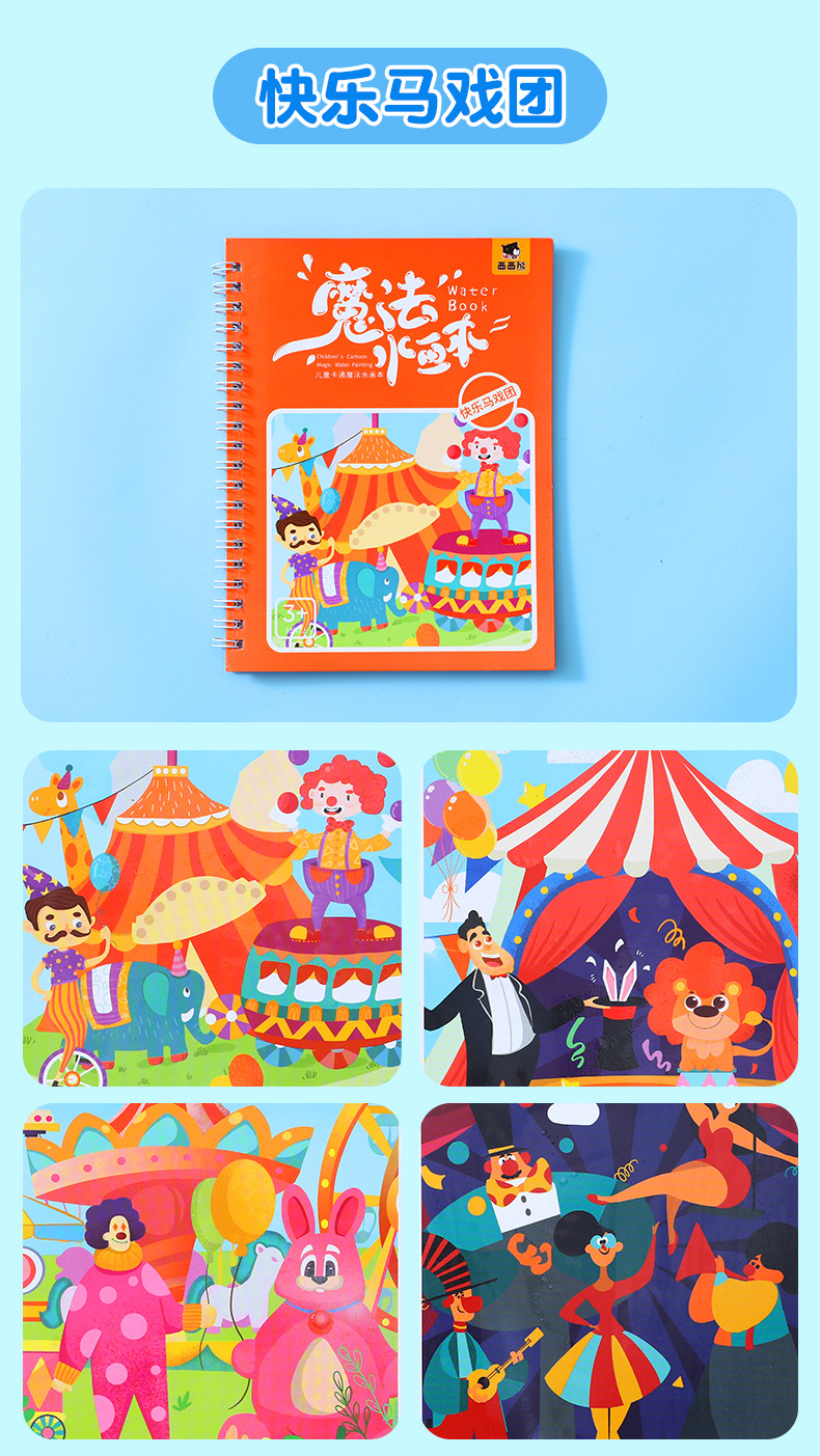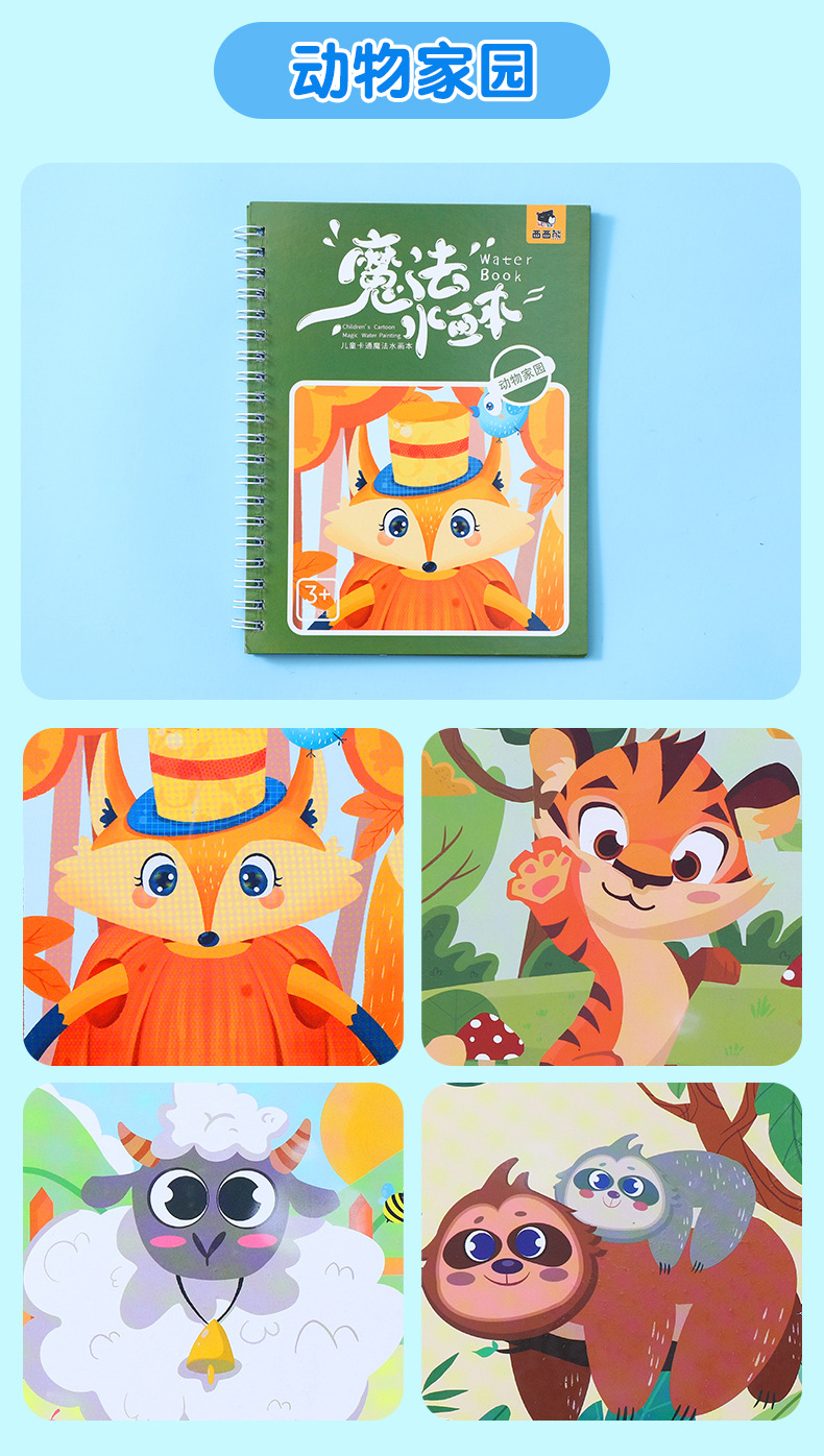 마법의 수채화 그림책, 투명한 물 그림, 아기에게 안전한 그림 장난감, 포장이 필요 없고 반복해서 그릴 수 있는 어린이용 물 그림책스토어 가기