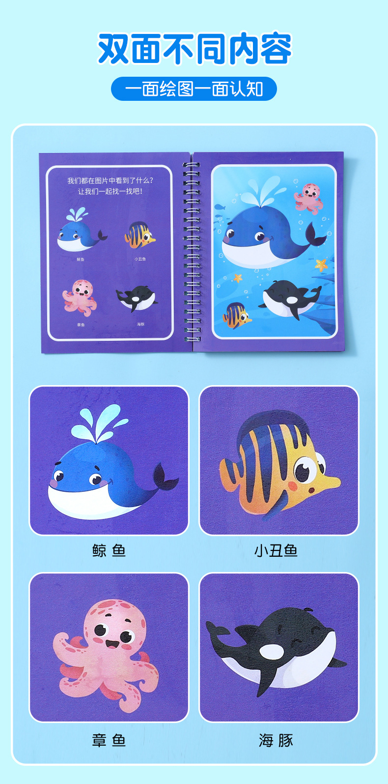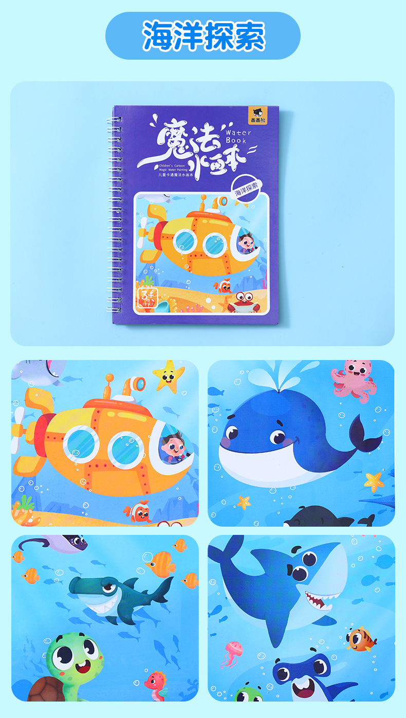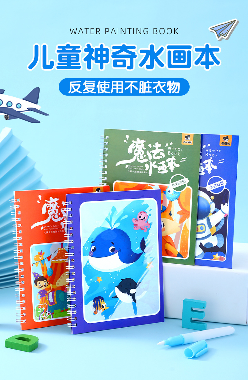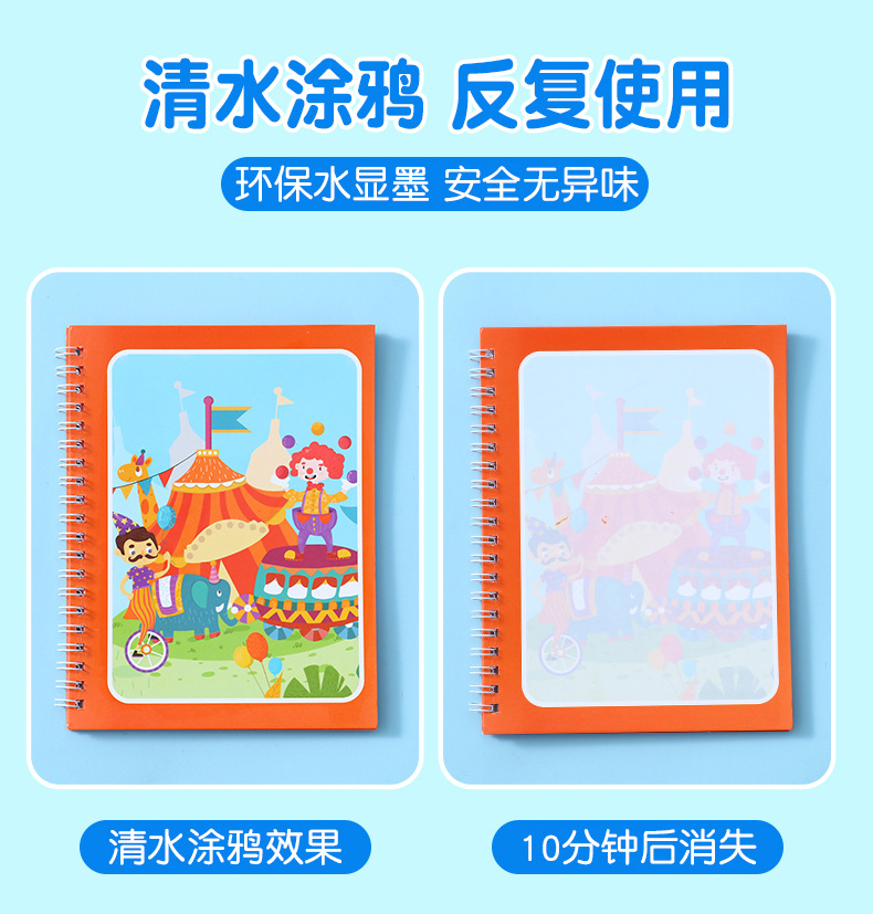 마법의 수채화 그림책, 투명한 물 그림, 아기에게 안전한 그림 장난감, 포장이 필요 없고 반복해서 그릴 수 있는 어린이용 물 그림책