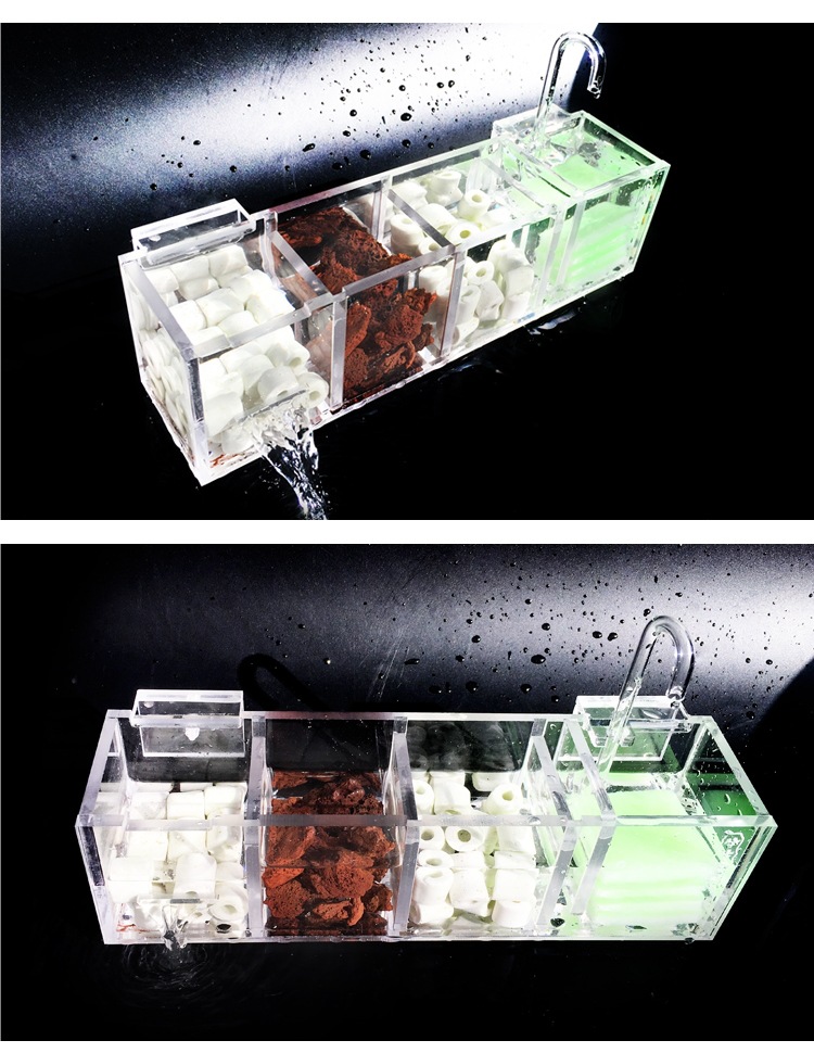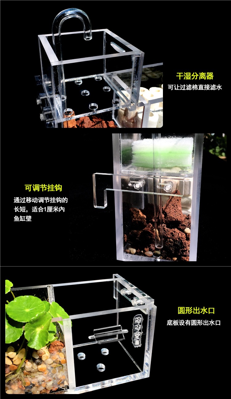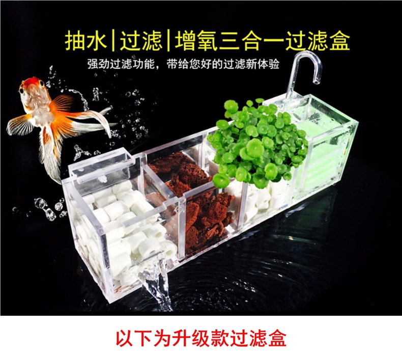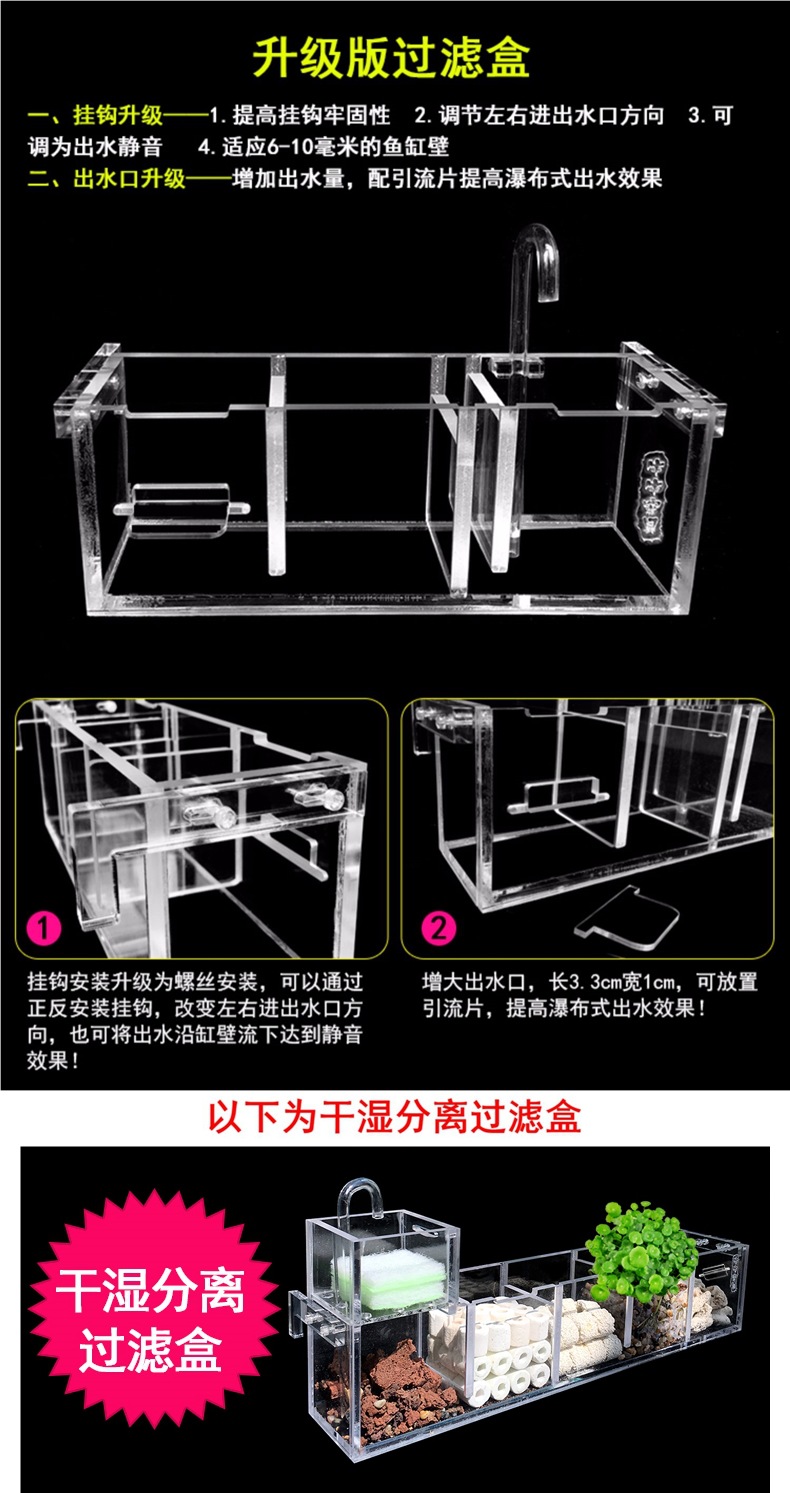 물고기 탱크 필터 건식 및 습식 분리 3-in-1 소형 자동 외부 벽걸이 형 수족관 드립 박스 산소 정화