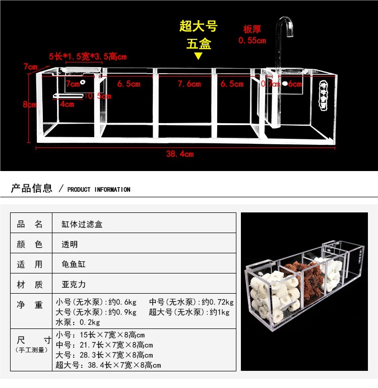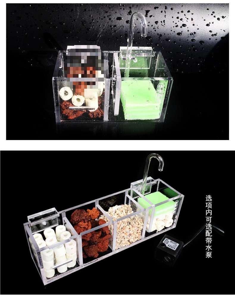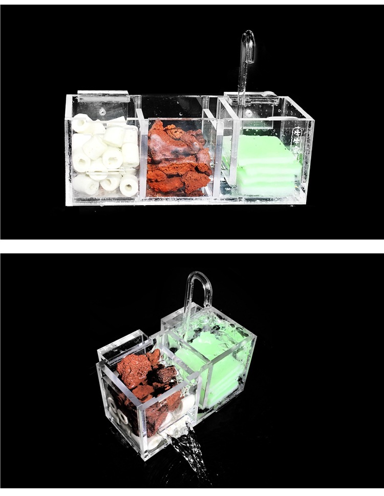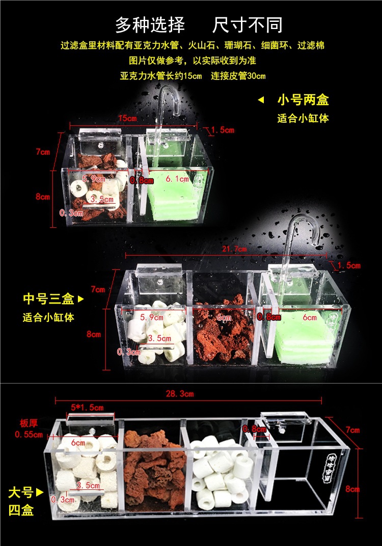 물고기 탱크 필터 건식 및 습식 분리 3-in-1 소형 자동 외부 벽걸이 형 수족관 드립 박스 산소 정화