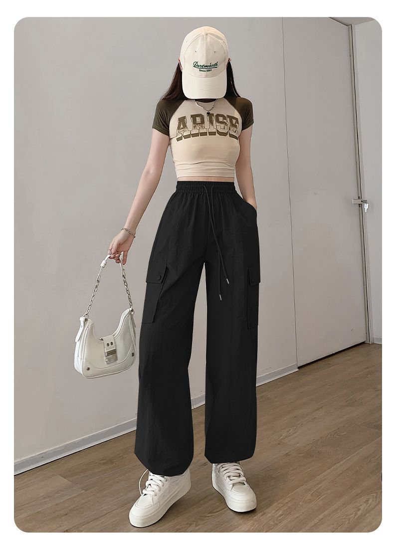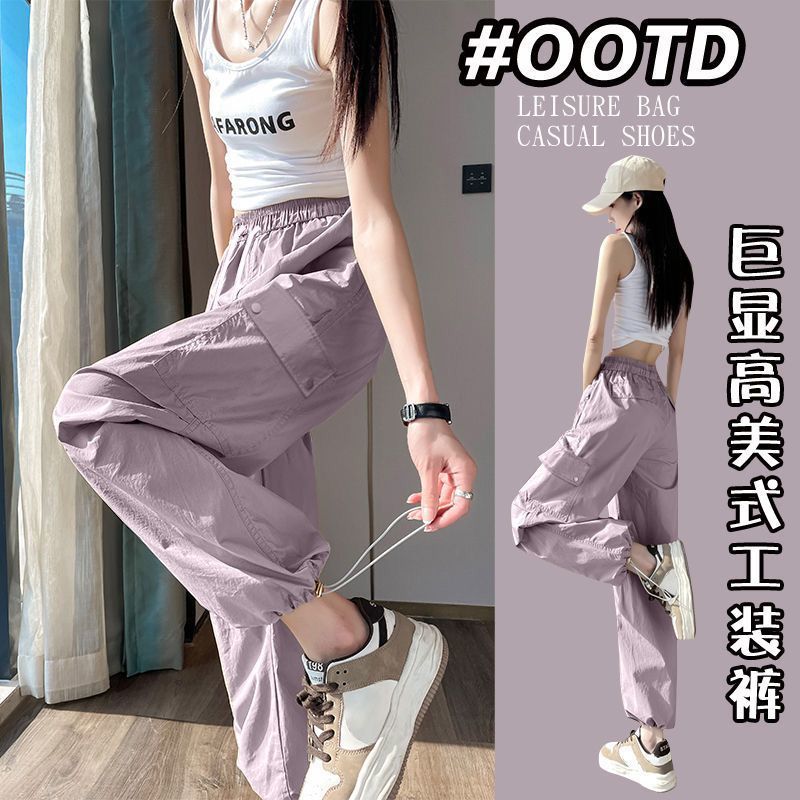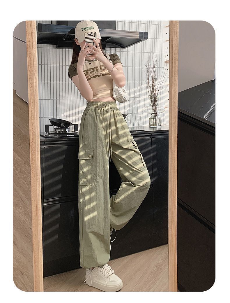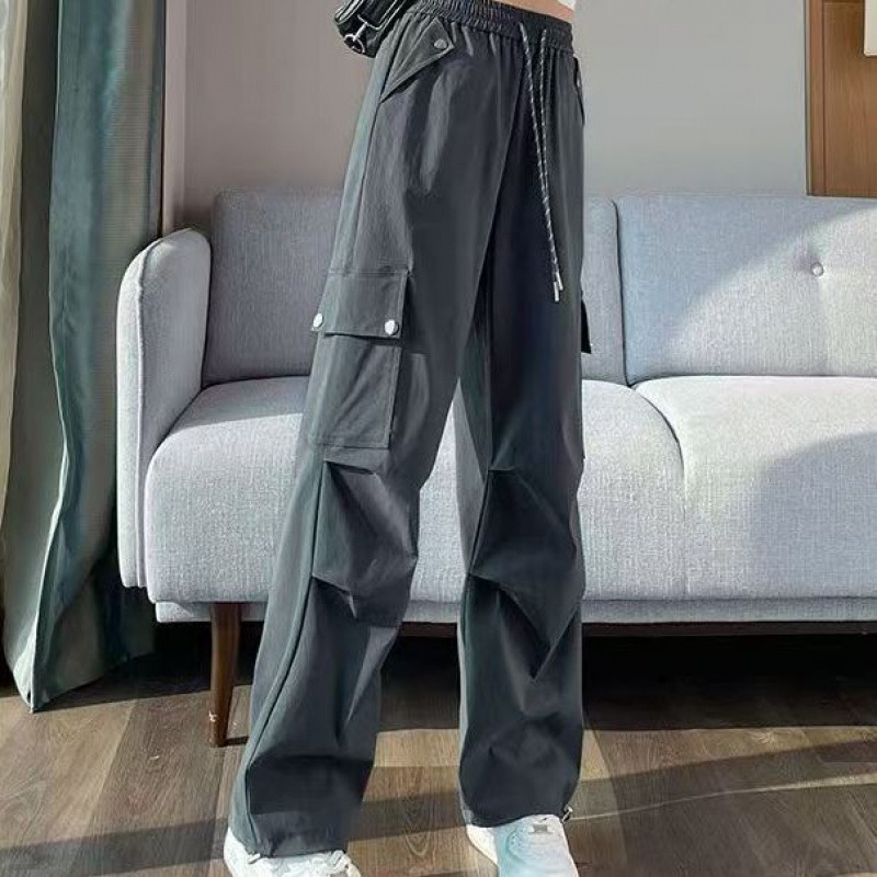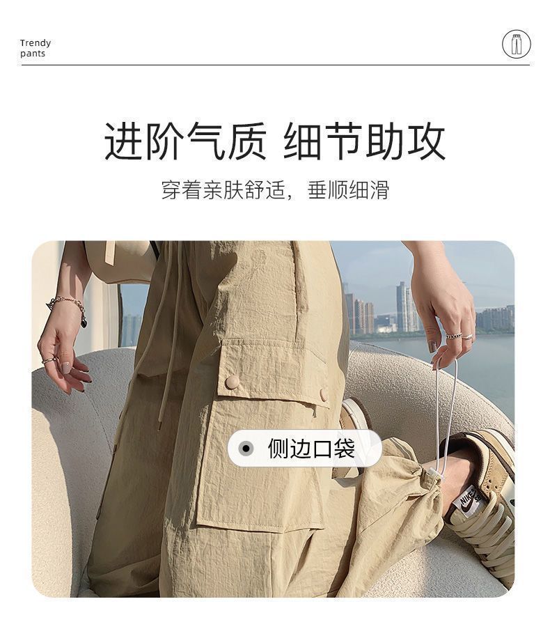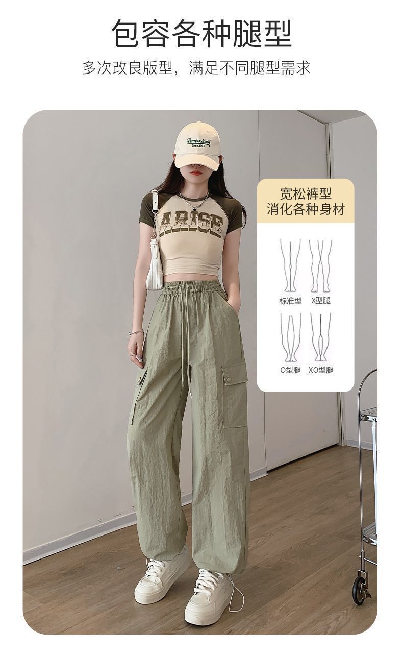 2025 새로운 크록 바지 여성 여름 얇은 새로운 빠른 건조 아이스 실크 미국 스타일 와이드 레그 캐주얼 바지 작은 남성스토어 가기