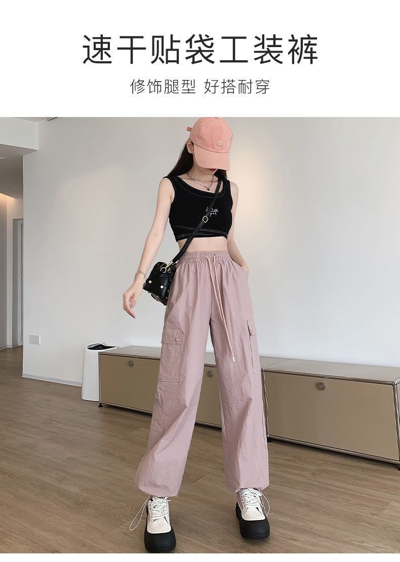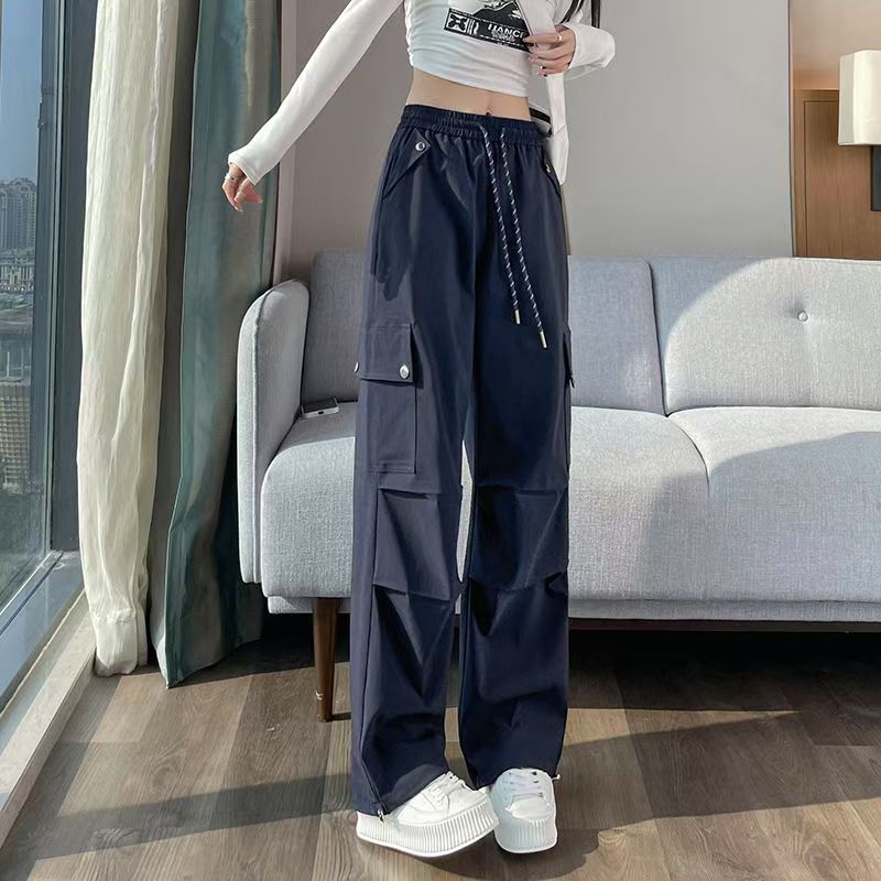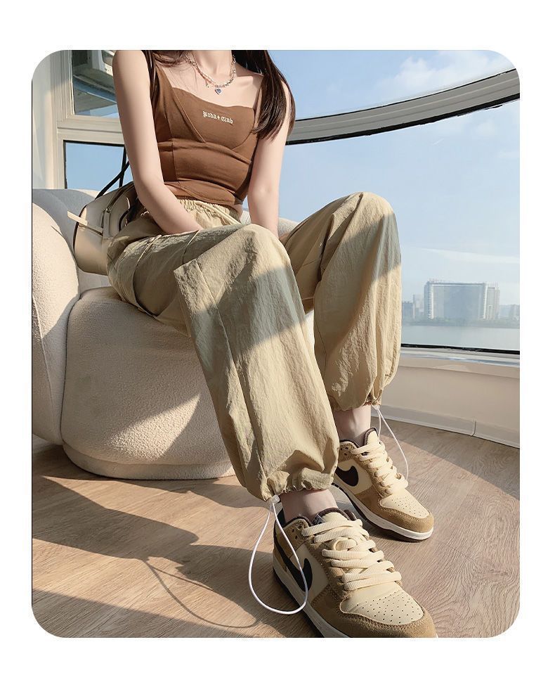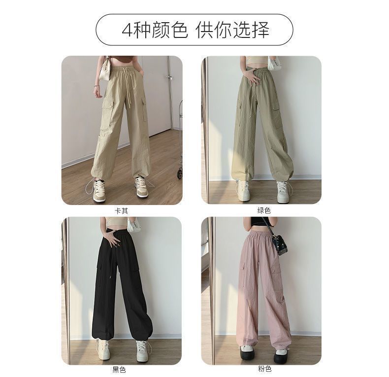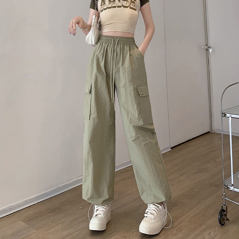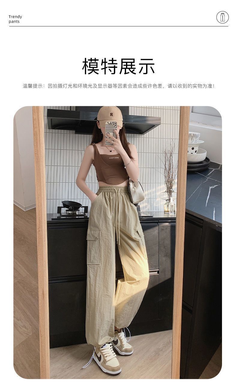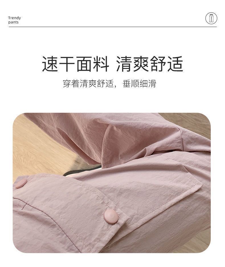 2025 새로운 크록 바지 여성 여름 얇은 새로운 빠른 건조 아이스 실크 미국 스타일 와이드 레그 캐주얼 바지 작은 남성스토어 가기