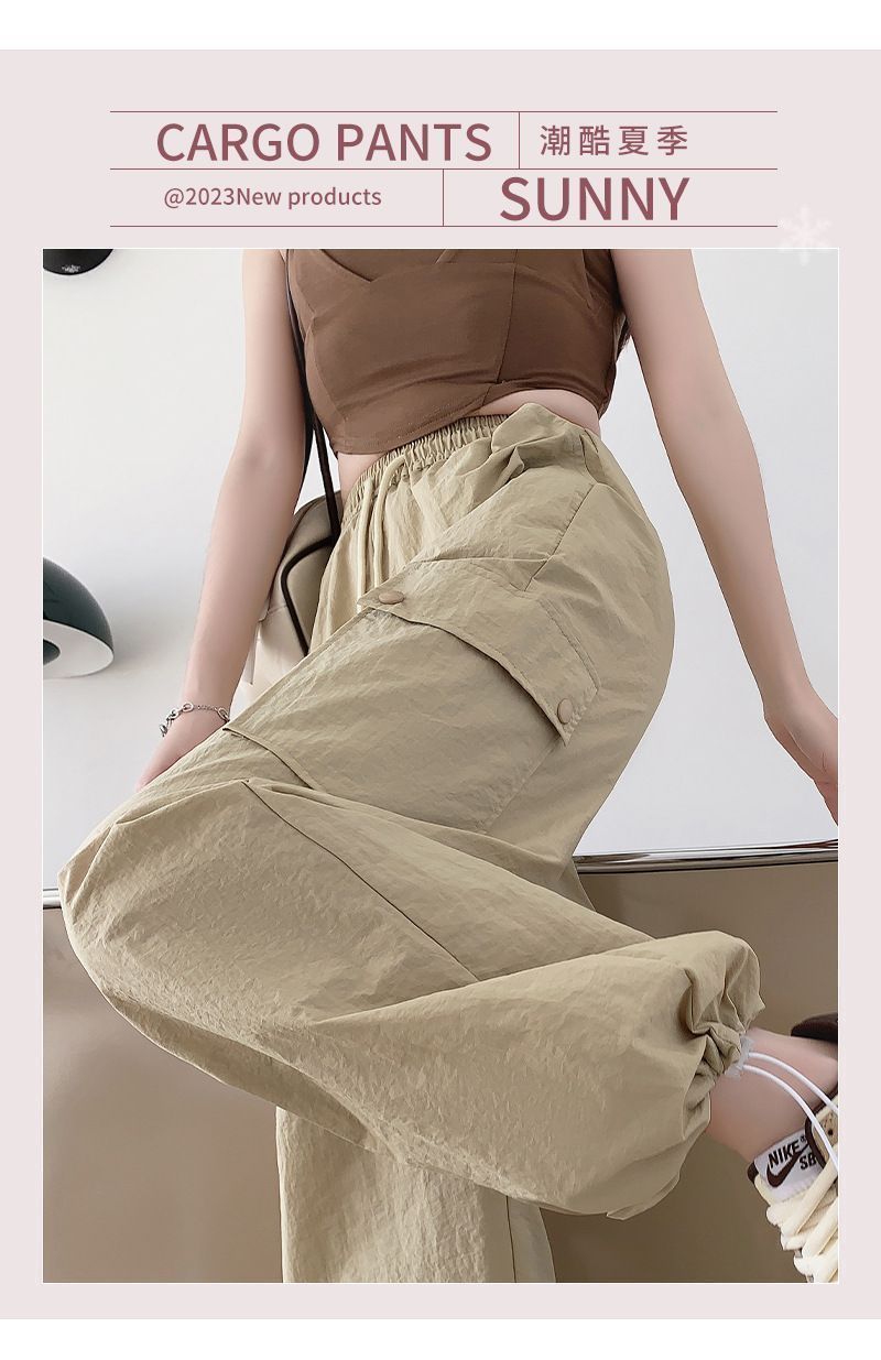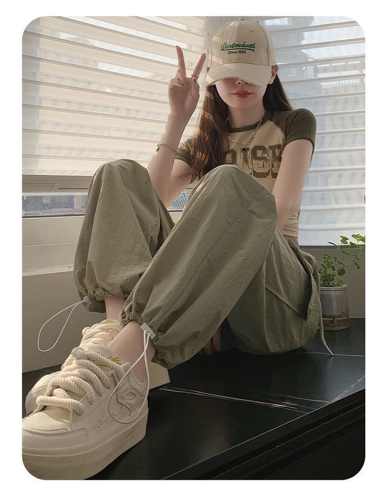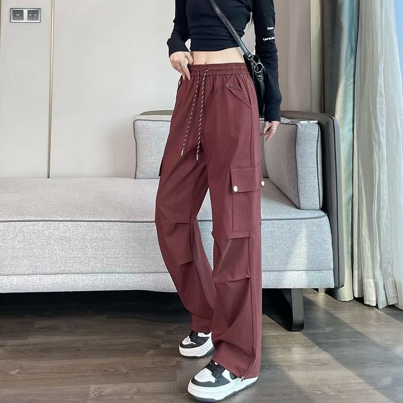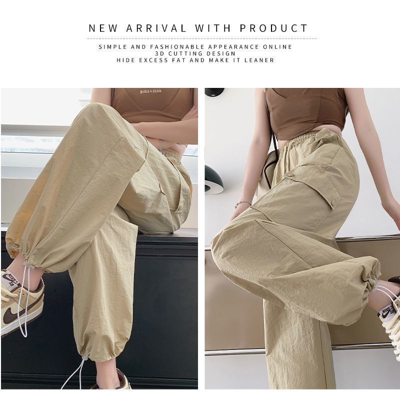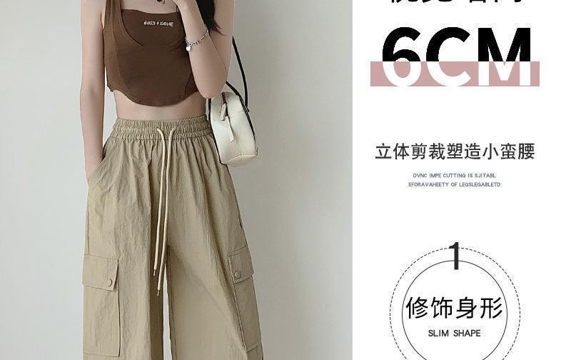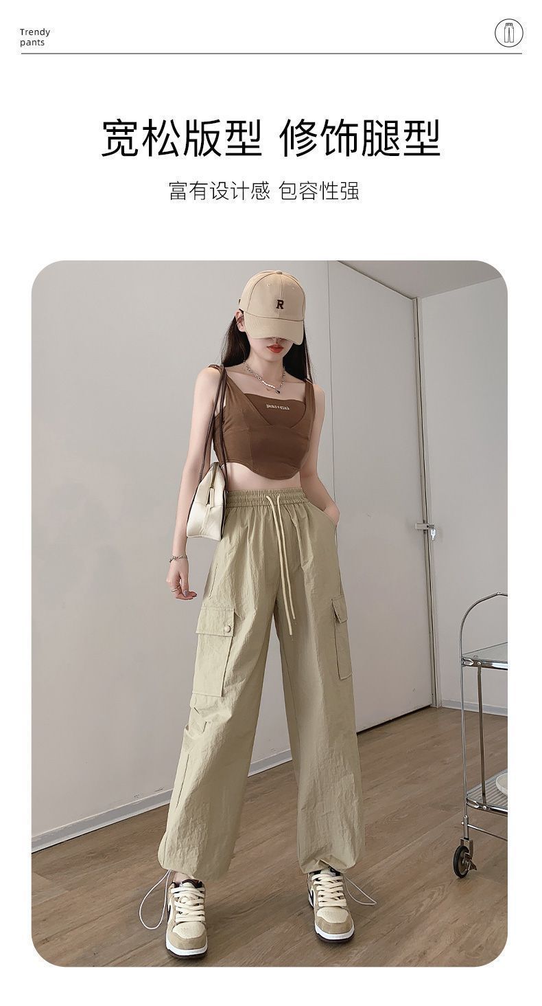 2025 새로운 크록 바지 여성 여름 얇은 새로운 빠른 건조 아이스 실크 미국 스타일 와이드 레그 캐주얼 바지 작은 남성스토어 가기