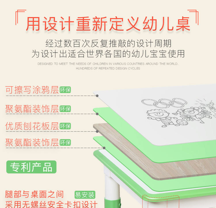 Yuchai 유치원 테이블과 의자 세트 어린이 리프팅 및 낙서 학습 테이블 홈 조기 교육 아기 쓰기 테이블
