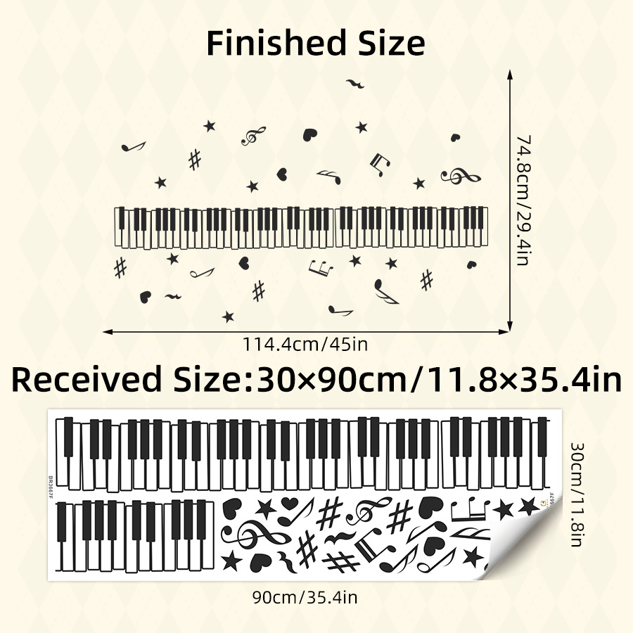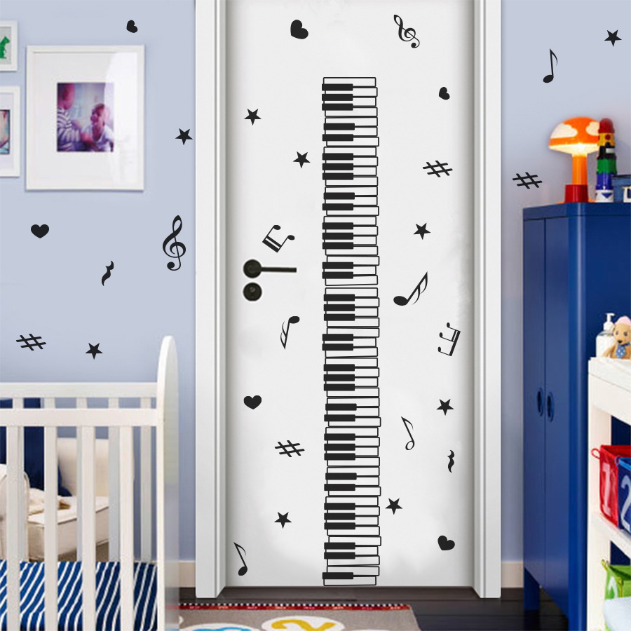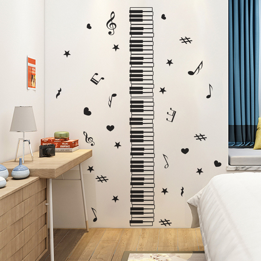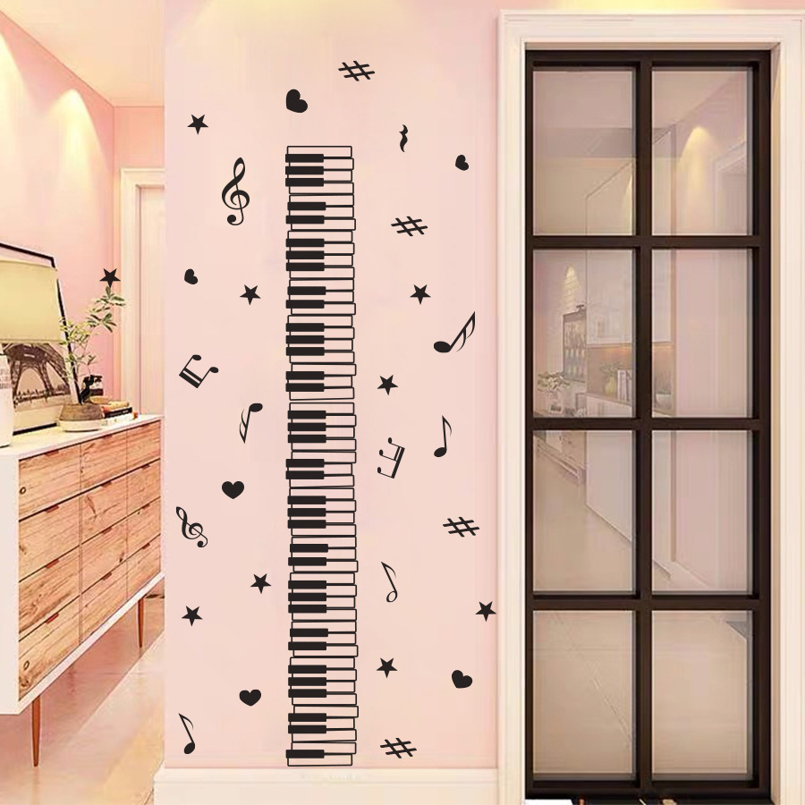 BR3667F 피아노 키 사랑 음표 간단한 애니메이션 자체 접착 기능 침실 거실 입구 장식 벽 스티커