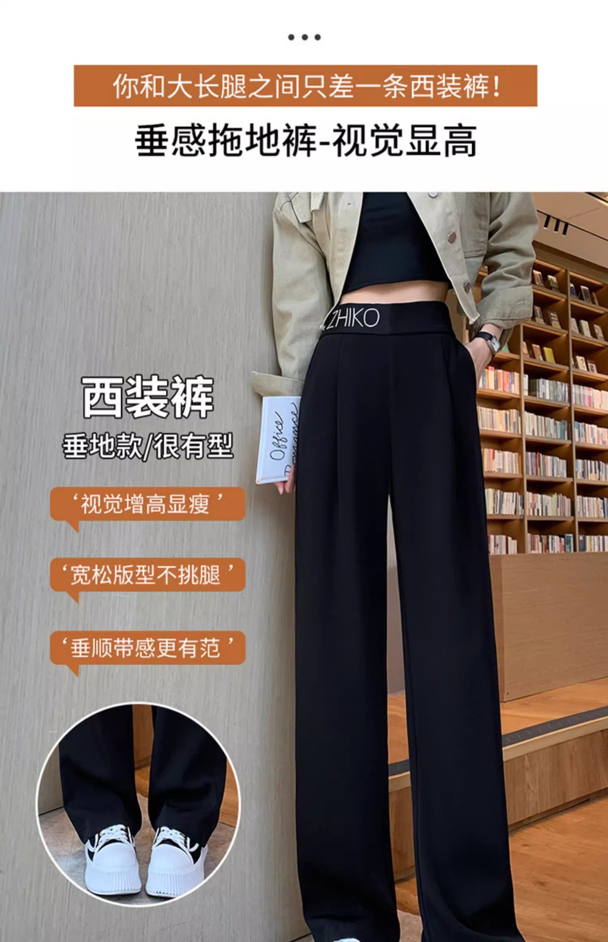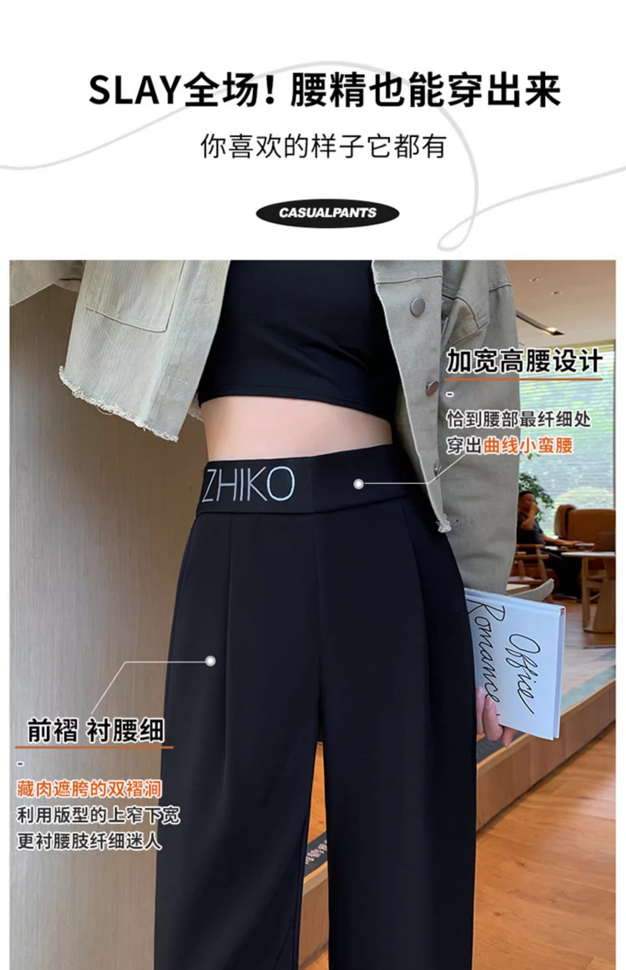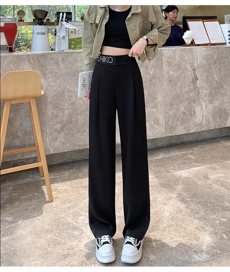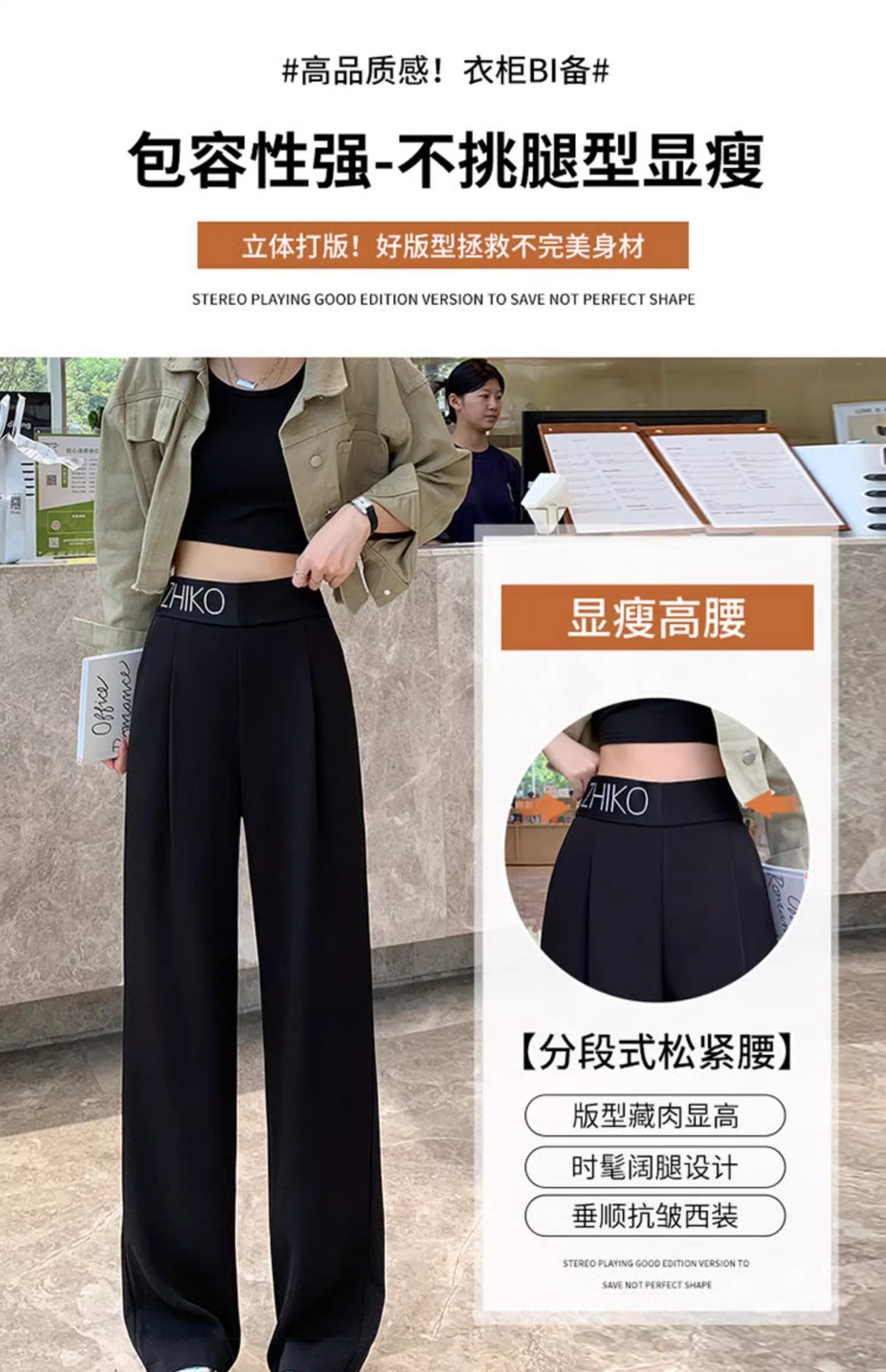 여성을위한 좁은 얼음 실크 와이드 레그 팬츠 가을 얇은 쉬폰 하이 웨이스트 스트레이트 슈트 캐주얼 스포츠 바지스토어 가기