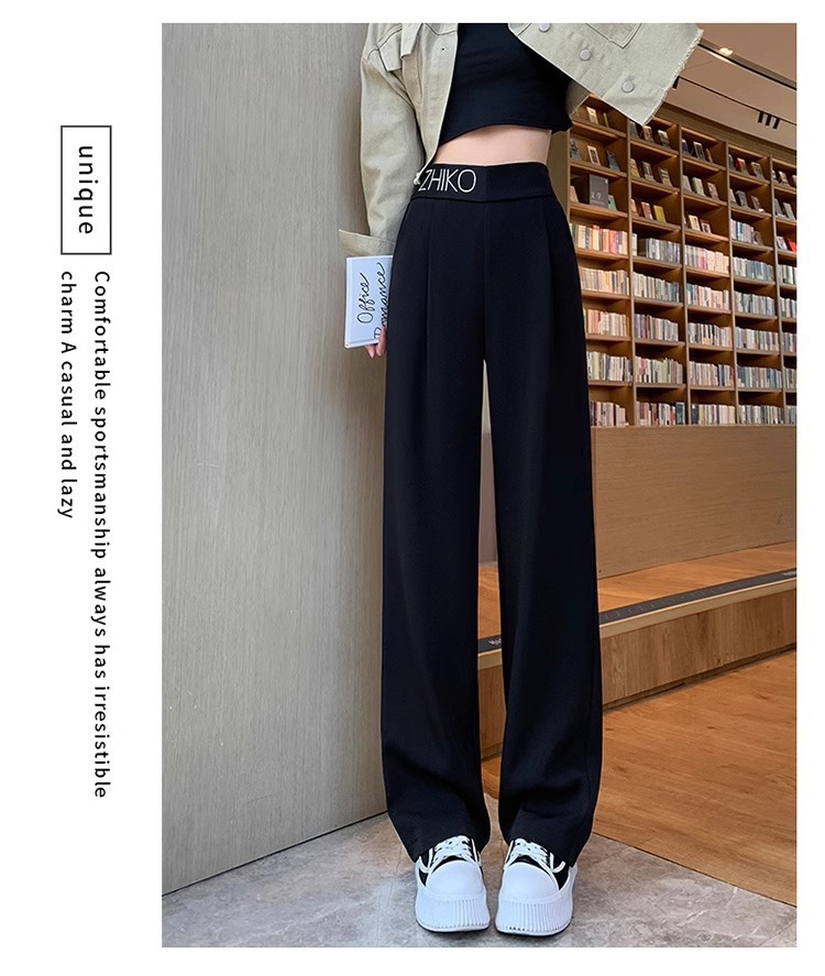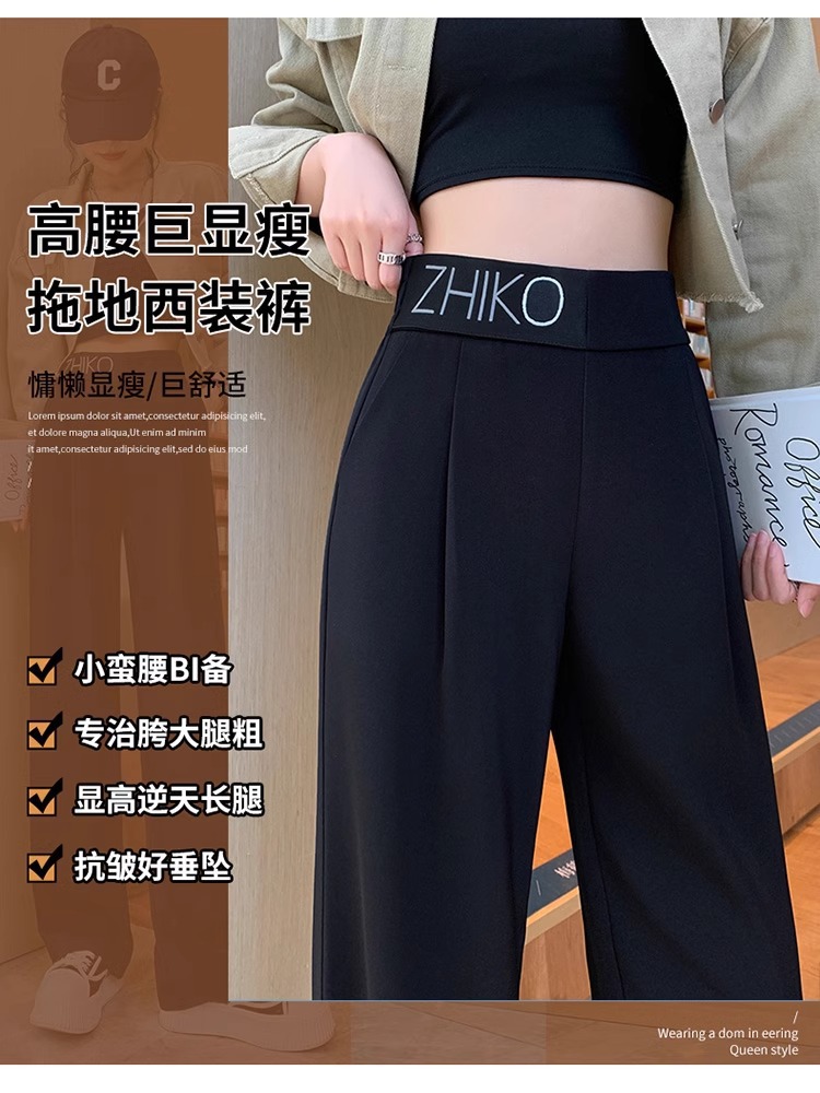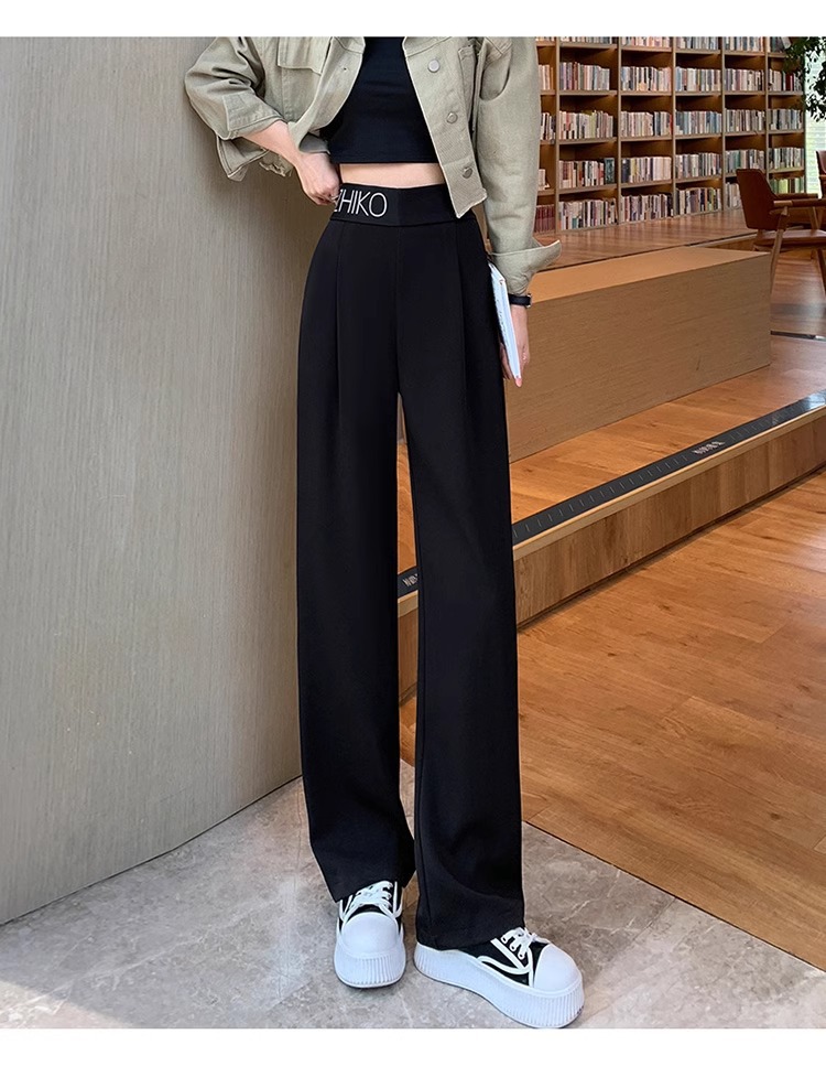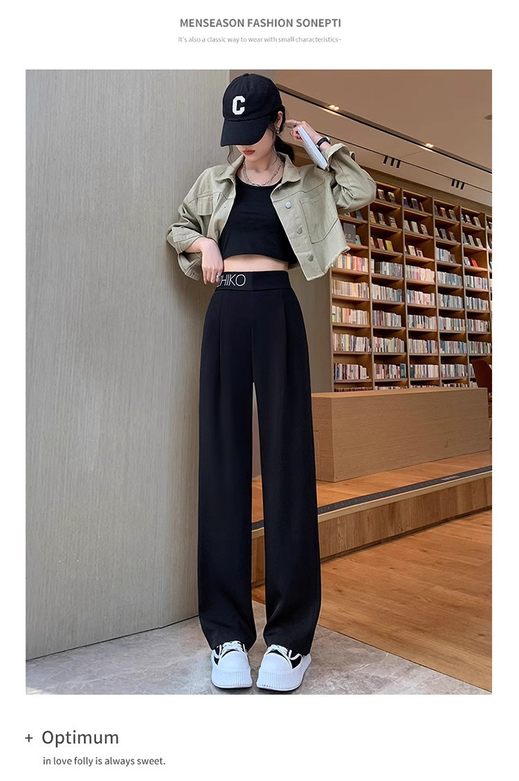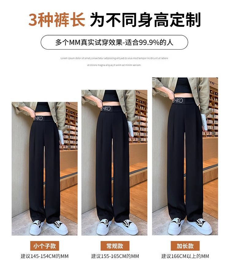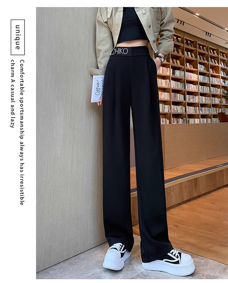 여성을위한 좁은 얼음 실크 와이드 레그 팬츠 가을 얇은 쉬폰 하이 웨이스트 스트레이트 슈트 캐주얼 스포츠 바지스토어 가기