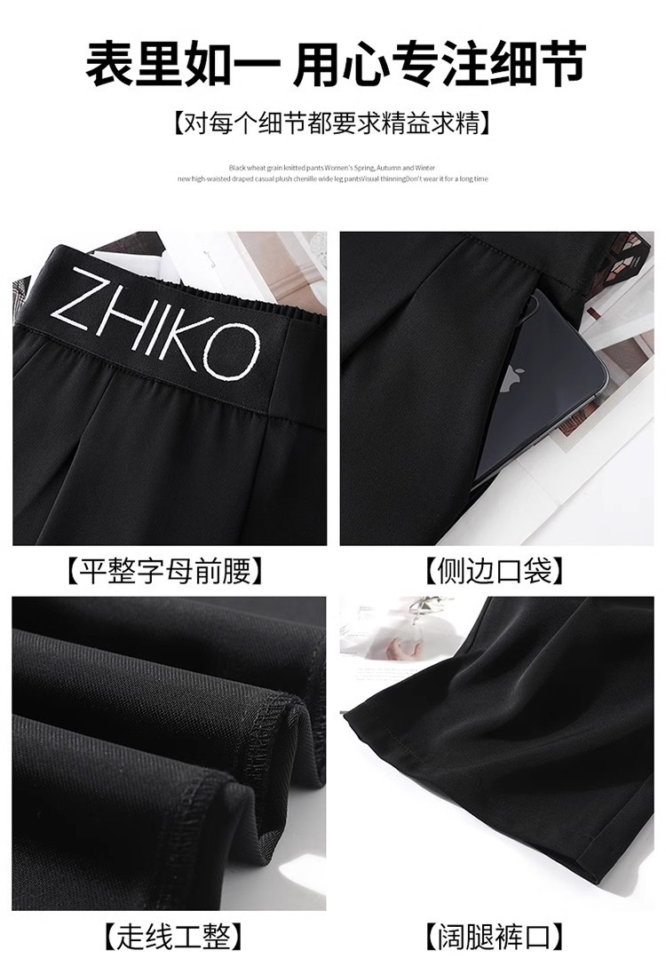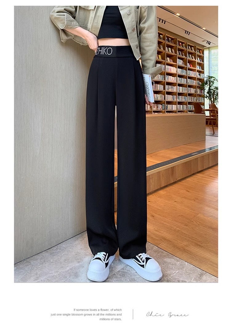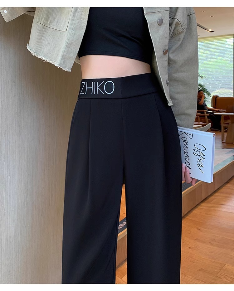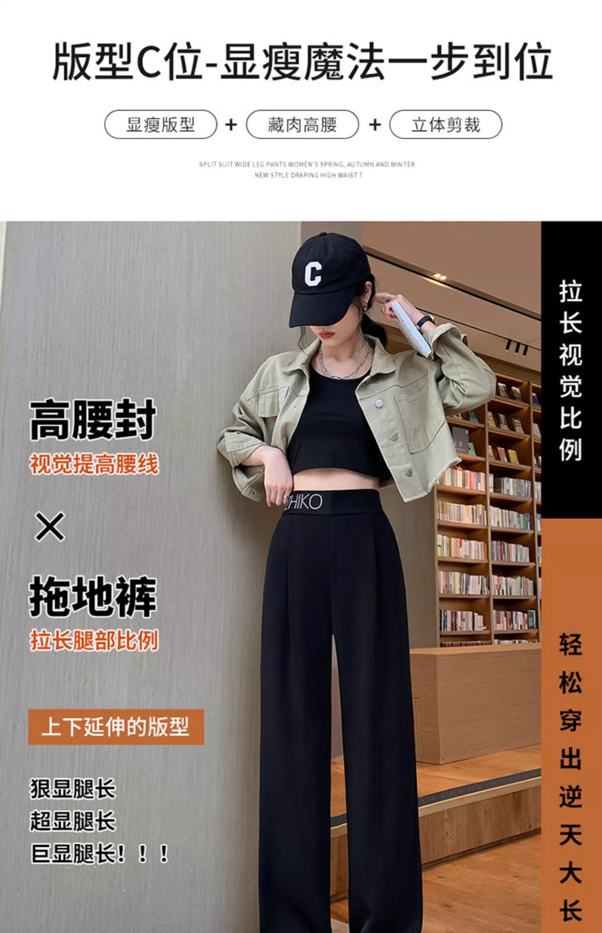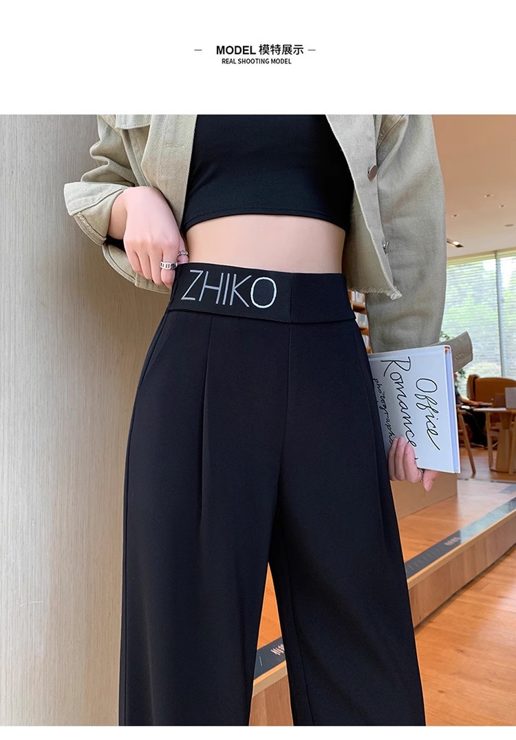 여성을위한 좁은 얼음 실크 와이드 레그 팬츠 가을 얇은 쉬폰 하이 웨이스트 스트레이트 슈트 캐주얼 스포츠 바지스토어 가기