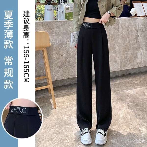 여성을위한 좁은 얼음 실크 와이드 레그 팬츠 가을 얇은 쉬폰 하이 웨이스트 스트레이트 슈트 캐주얼 스포츠 바지