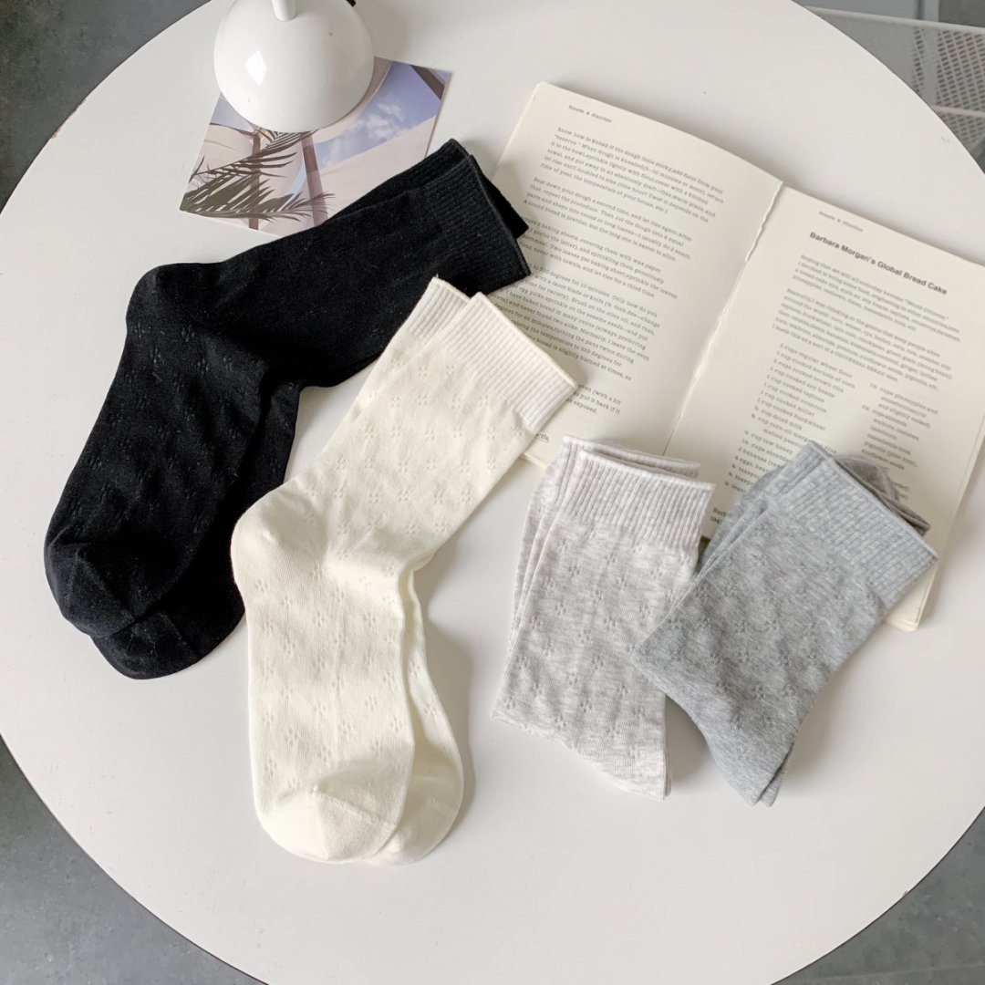 Mekki 맞춤형 봄 여름 새 양말 여성용 종아리 양말 얇은 양말 크림 화이트 메쉬 통기성 기능스토어 가기