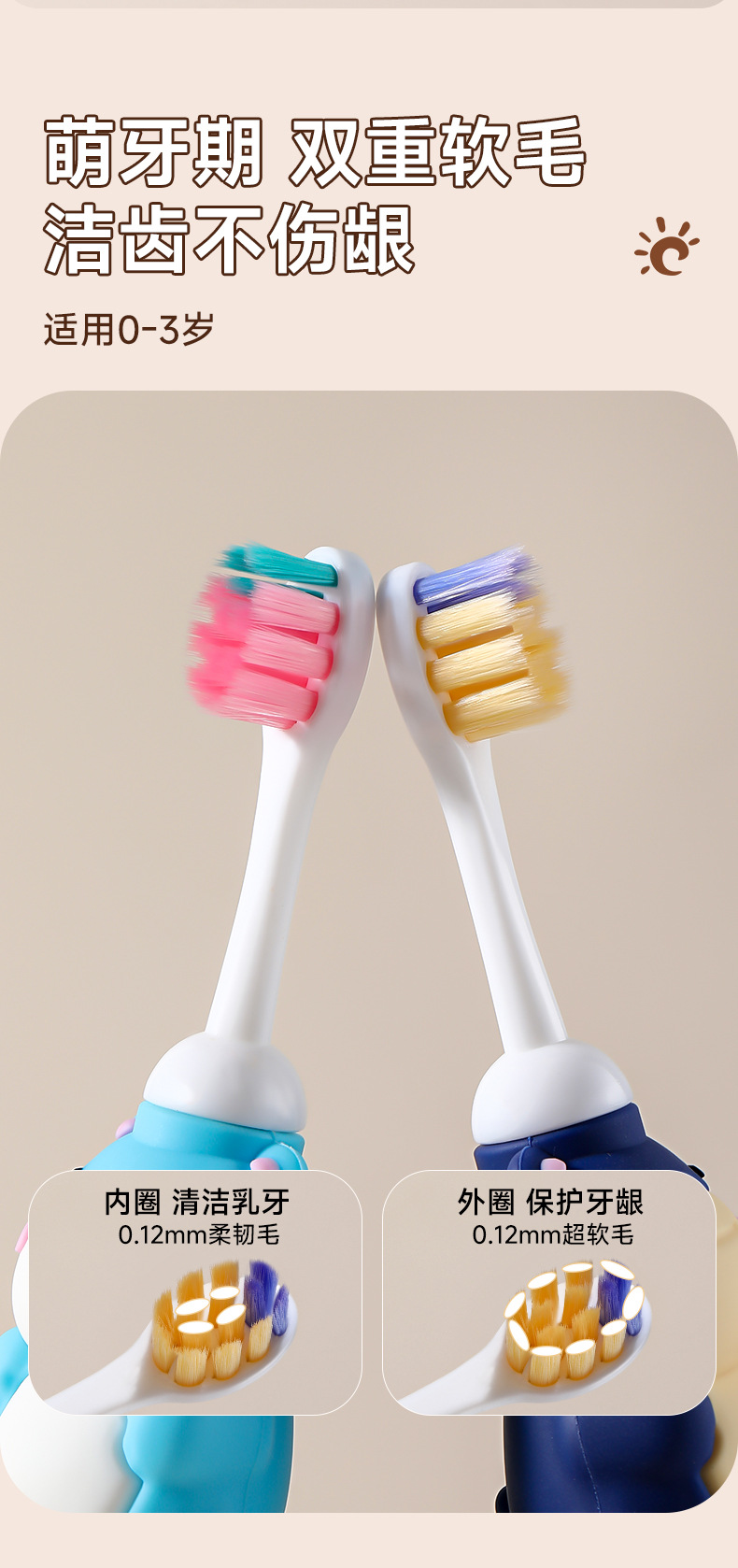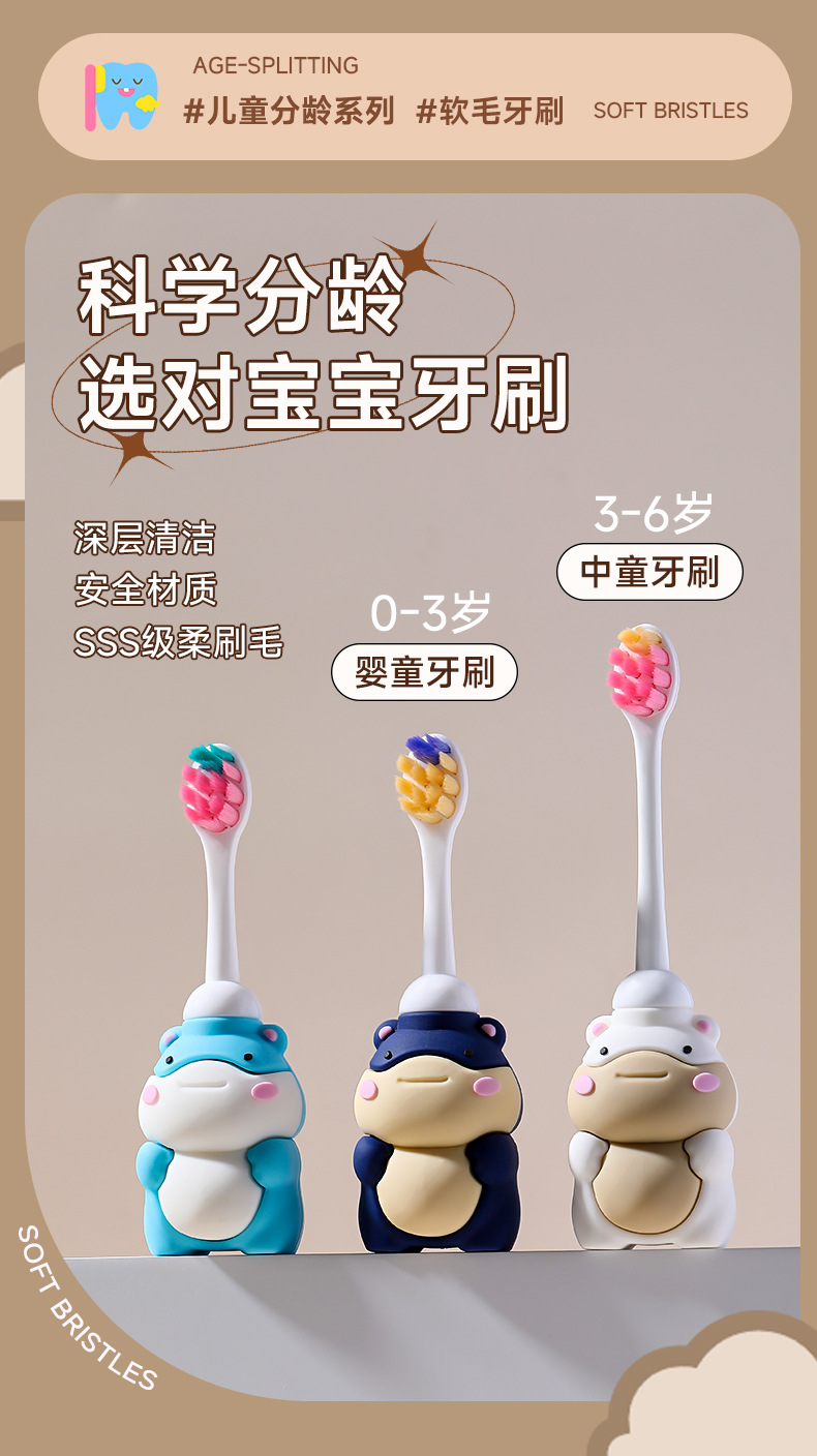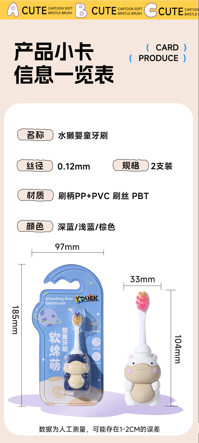 Yunrou Wanmao 어린이 칫솔 0-3-6 세 단일 팩 만화 수달 유아 부드러운 칫솔 재고 있음스토어 가기