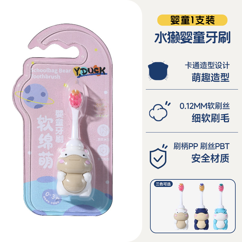 Yunrou Wanmao 어린이 칫솔 0-3-6 세 단일 팩 만화 수달 유아 부드러운 칫솔 재고 있음