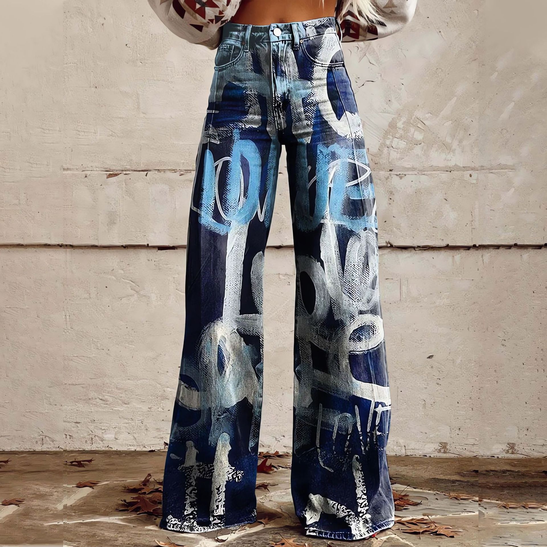 2025 대외 무역 국경 간 AliExpress ebay 유럽과 미국의 대외 무역 플러스 사이즈 여성 캐주얼 바지 얇은 모방 청바지 넓은 다리스토어 가기