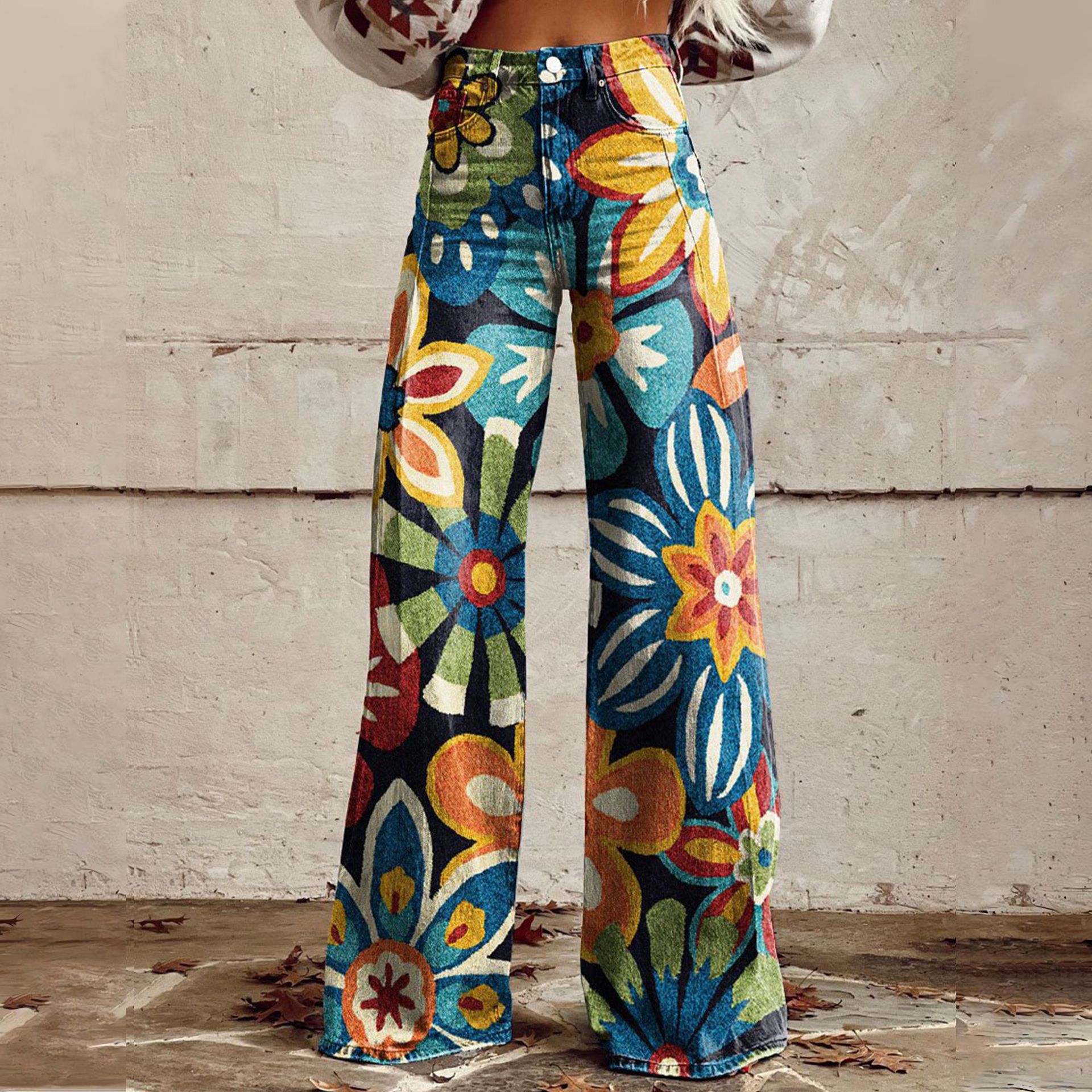 2025 대외 무역 국경 간 AliExpress ebay 유럽과 미국의 대외 무역 플러스 사이즈 여성 캐주얼 바지 얇은 모방 청바지 넓은 다리