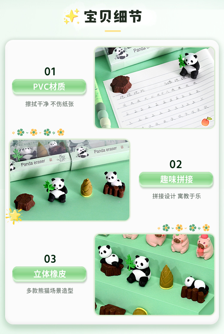 만화 팬더 지우개 귀여운 재미 조립 3D 이동식 시뮬레이션 고무 세트 초등학교 선물스토어 가기