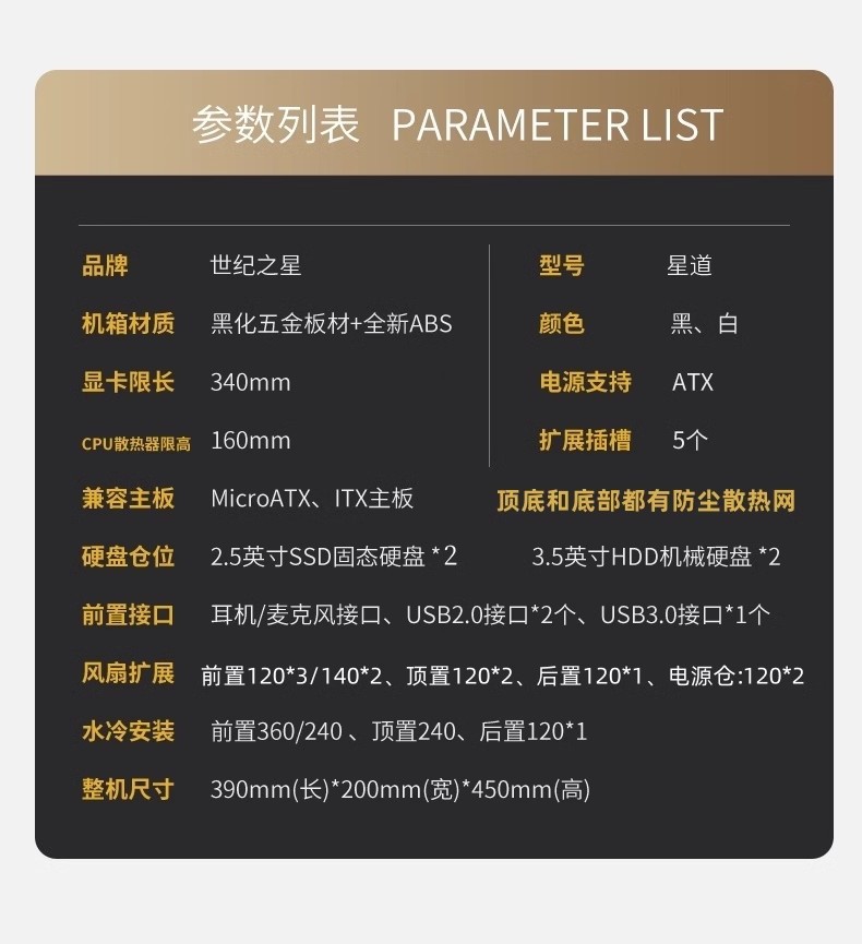 센추리 스타 섀시 매트 데스크탑 오피스 ITX 호스트 디럭스 게임 섀시 지원 물 냉각