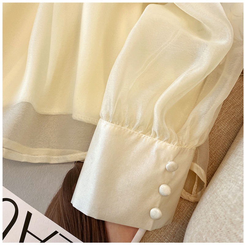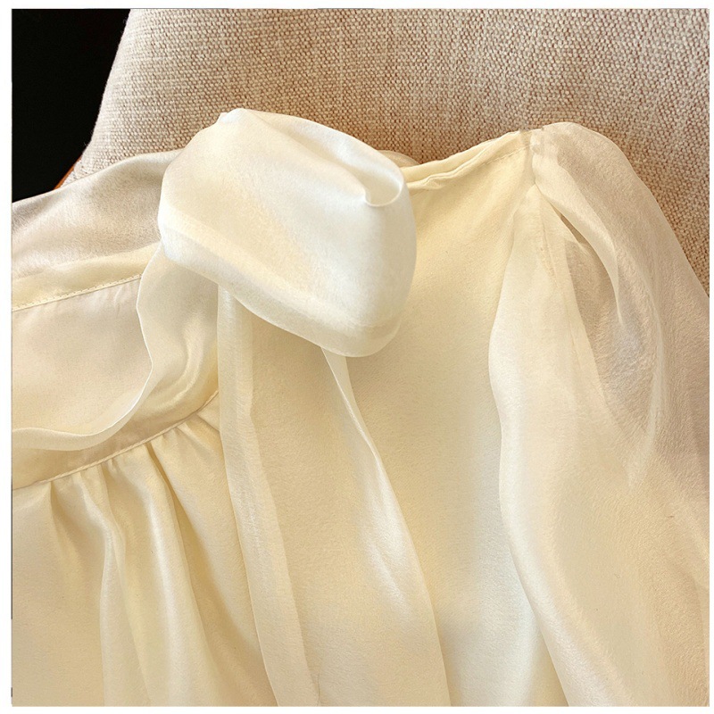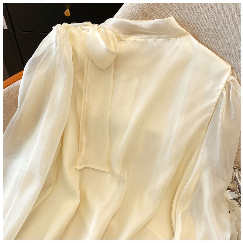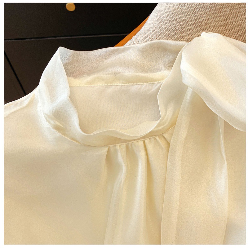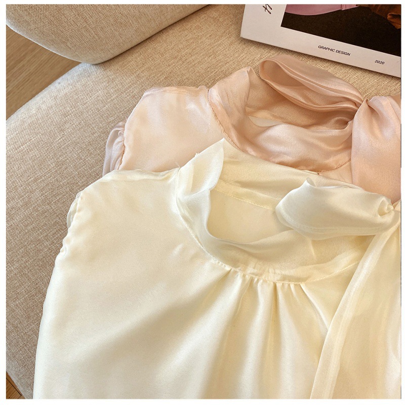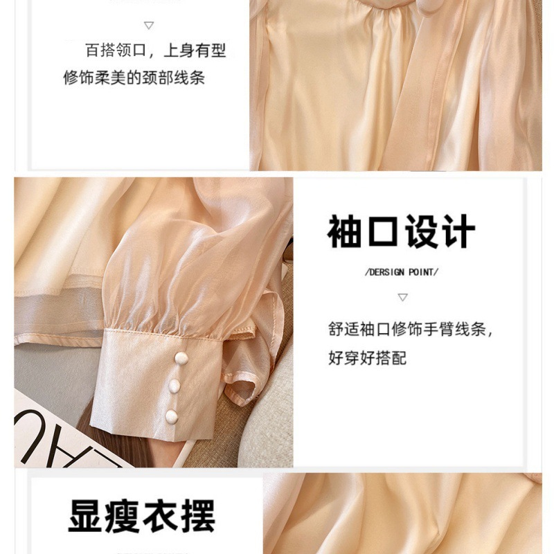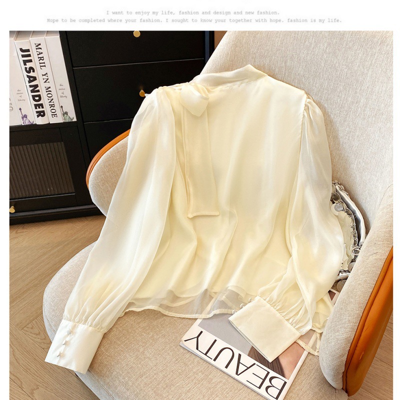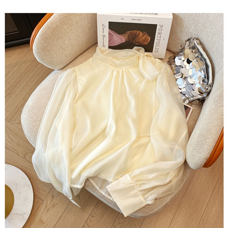 핑크 달콤한 활 스트랩 쉬폰 셔츠 여성의 봄과 가을 빛 성숙한 바람 아름다운 작은 셔츠 느슨한 우아한 탑스토어 가기